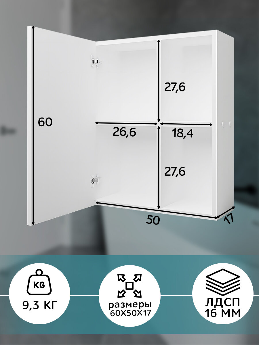 Шкаф навесной 50 см с полкой для ванной и туалета белый Каскад: сравнение цен, характеристики, фото, актуальное наличие и цены.