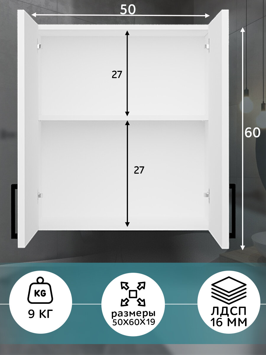 Шкаф навесной с ручками Уклад 55 Белый – это стильное и функциональное решение для вашей ванной комнаты. Он идеально впишется в любой интерьер благодаря своему сдержанному дизайну и белому цвету. Шкаф имеет две двери, за которыми находится просторное отделение с полками. Это позволяет хранить различные предметы, начиная от косметики и заканчивая полотенцами. Шкаф навесной Уклад 600 Белый отличается своей компактностью и узкими габаритами, поэтому он легко поместится даже в небольших ванных комнатах. Создайте уютный и аккуратный интерьер, где каждая вещь будет иметь свое место. Благодаря ручкам, шкаф выглядит еще более элегантно. Он подходит для тех, кто ценит современный стиль и функциональность. Этот шкаф навесной предлагает удобство и практичность в использовании. Вы сможете легко достать нужные предметы, а закрывающиеся двери обеспечат сохранность содержимого.