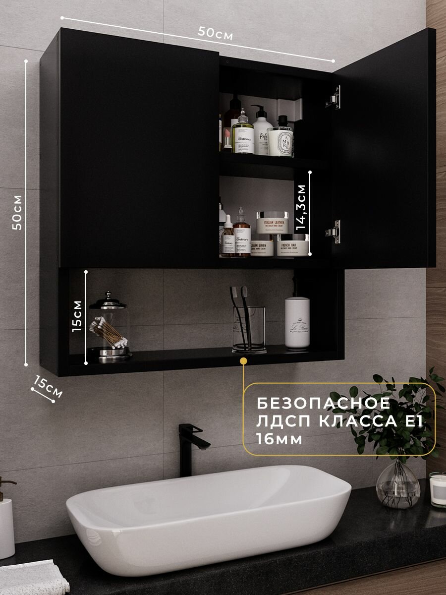 Этот навесной шкаф будет идеальным решением для вашей прихожей, кухни, ванной, туалета гостиной или балкона. Подвесной пенал имеет современное открывание дверей без ручки. Внутри есть вместительная и эргономичная полочка. Шкафчик чёрный, может быть, как навесным (в комплекте есть крепления-навесы), так и напольным. Можно использовать комплект из двух таких шкафов, ведь вместе они смотрятся очень лаконично. Светлый навесной створчатый шкаф будет прекрасно смотреться в любом интерьере. Компактный, но при этом достаточно вместительный. Его простота и стиль, это залог красоты и удобства. Изготовлен из безопасного ЛДСП класса Е1 16 мм. Высота шкафчика 50 см, глубина 15 см, ширина 50 см, высота нижней полки 15 см, высота внутренних полок 14 см. У него чистый цвет, поэтому будет отлично сочетается с любой современной мебелью и максимально будет прост в уборке. Элементарная сборка (в комплекте есть инструкция. Современное открывание без ручек; Компактный размер – не занимает много места; Светлая поверхность, легко очищается от пыли и загрязнений. Вы сможете найти ещё больше товаров внутри нашего магазина Философия уюта!