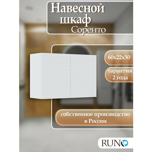 Шкаф с полками навесной Runo Соренто 60х30 (двустворчатый) - отличное решение для современного оформления Вашего дома. Рифленые фасады с горизонтальным расположением волны, визуально «оживляют» и «приводят в движение» всю обстановку комнаты, сохраняя при этом умиротворение и покой. Шкафчик выполнен в традиционном и всегда модном белом цвете и гармонично впишется в любой интерьер. Шкаф навесной отлично впишется в ванную комнату, где Вы сможете его использовать для дополнительного хранения как шкаф навесной для ванной над стиральной машиной или мини шкаф пенал с полками. Можно использовать его и как шкаф в прихожую, где он будет использован как шкаф антресоль, и станет изюминкой Вашего помещения, привлекая к себе внимание своим необычным дизайном. Также можно найти применение ему на кухне, где использовать его как мини бар для хранения Вашей коллекции вин или шкаф кухонный навесной для всякой кухонной утвари, привлекая восторженные взгляды Ваших гостей. Возможно, использование шкафа навесного в детской комнате, как книжного шкафа или просто навесного шкафа для всяких мелочей. Конечно же, шкаф навесной можно использовать на балконе или лоджии, любителям цветов он подойдёт для хранения всевозможного инвентаря. Шкаф с полками поможет организовать пространство в разных помещениях Вашего дома, послужит подспорьем в оптимизации пространства и мест для хранения всевозможных вещей. Шкаф поставляется в разобранном виде, в комплект входят: боковины шкафа левая и правая, верхняя и нижняя части шкафа, полки, дверца, задняя стенка шкафа, петли (одна с доводчиком, одна без доводчика), навесы шкафа, набор комплектующих для сборки шкафа, инструкция по сборке. Мебель для ванной RUNO - красота и практичность в мелочах! Цвет товара на мониторе может отличаться от реальных цветов, это зависит от настроек цветового профиля и разрешения Вашего монитора или мобильного устройства.