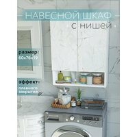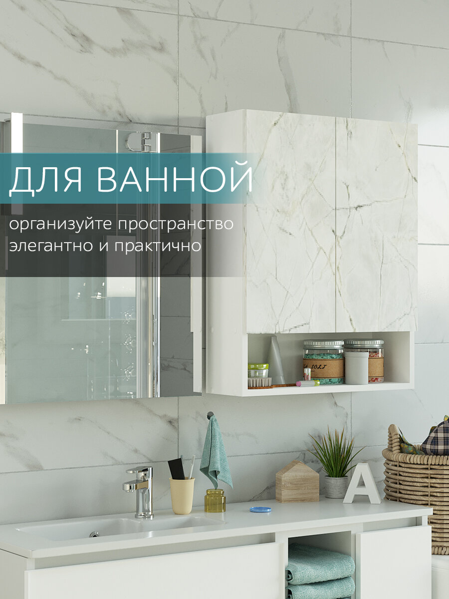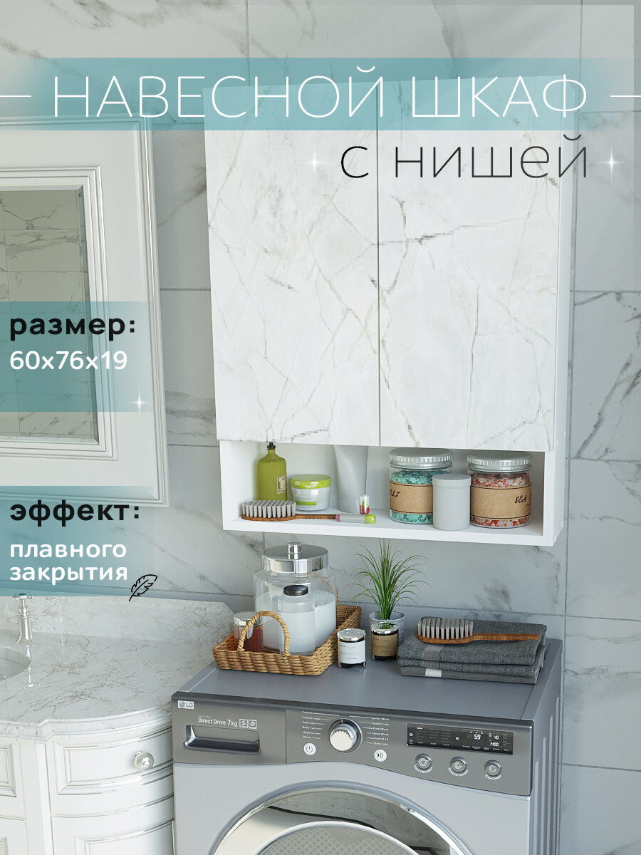 Купить Шкаф навесной с нишей и полками белый/мрамор 60 см для туалета и ванной Уклад с доставкой по всей России.