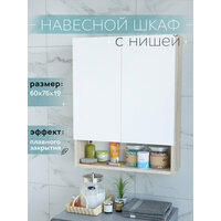 Купить Шкаф навесной с нишей и полками дуб сонома/белый 60 см для туалета и ванной Уклад с доставкой по всей России.