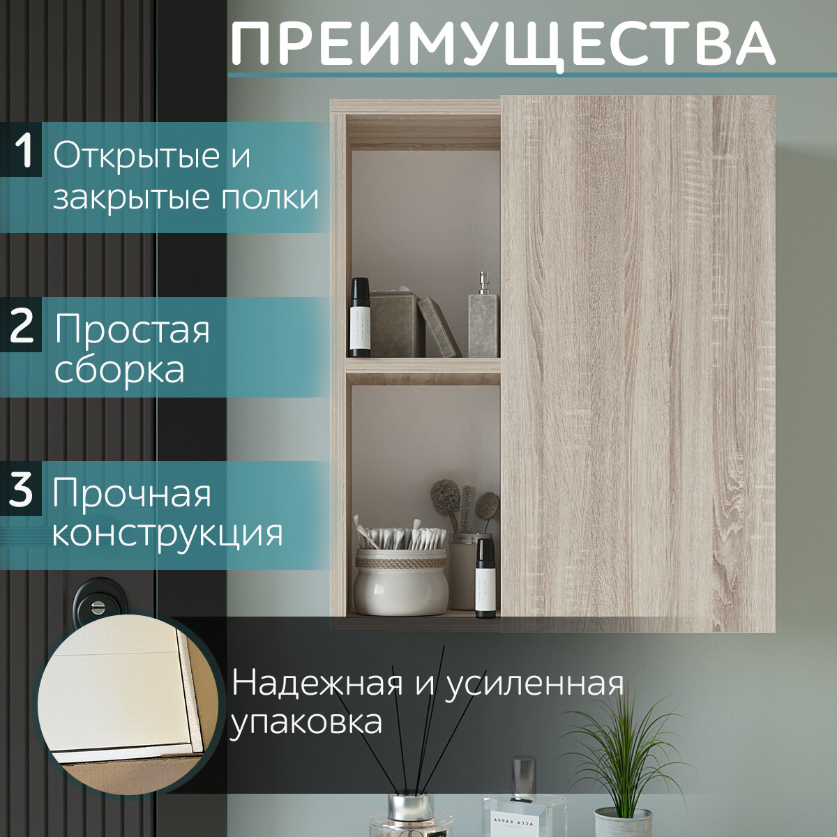 Купить Шкаф навесной с полками 50 см Дуб сонома для ванной и туалета Каскад с доставкой по всей России.
