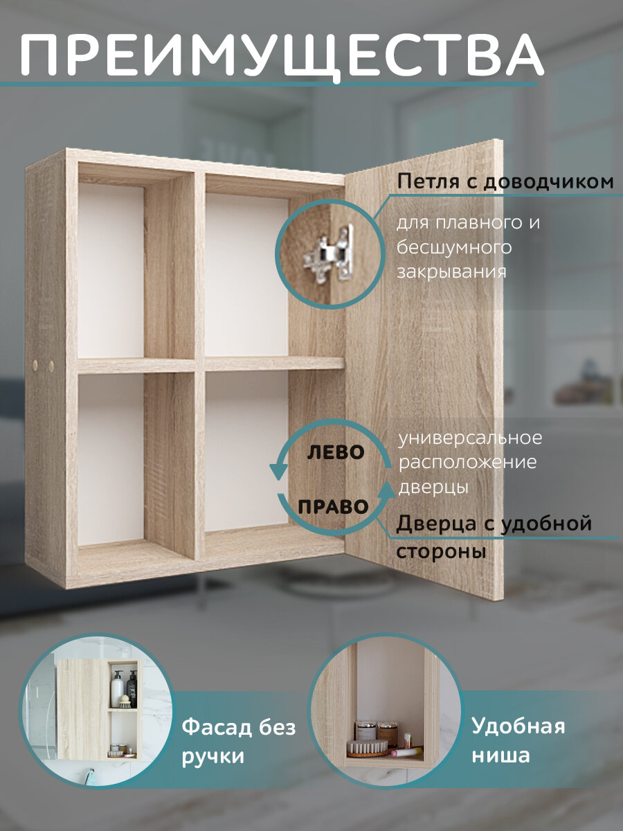 Шкаф навесной с полками 50 см Дуб сонома для ванной и туалета Каскад: сравнение цен, характеристики, фото, актуальное наличие и цены.