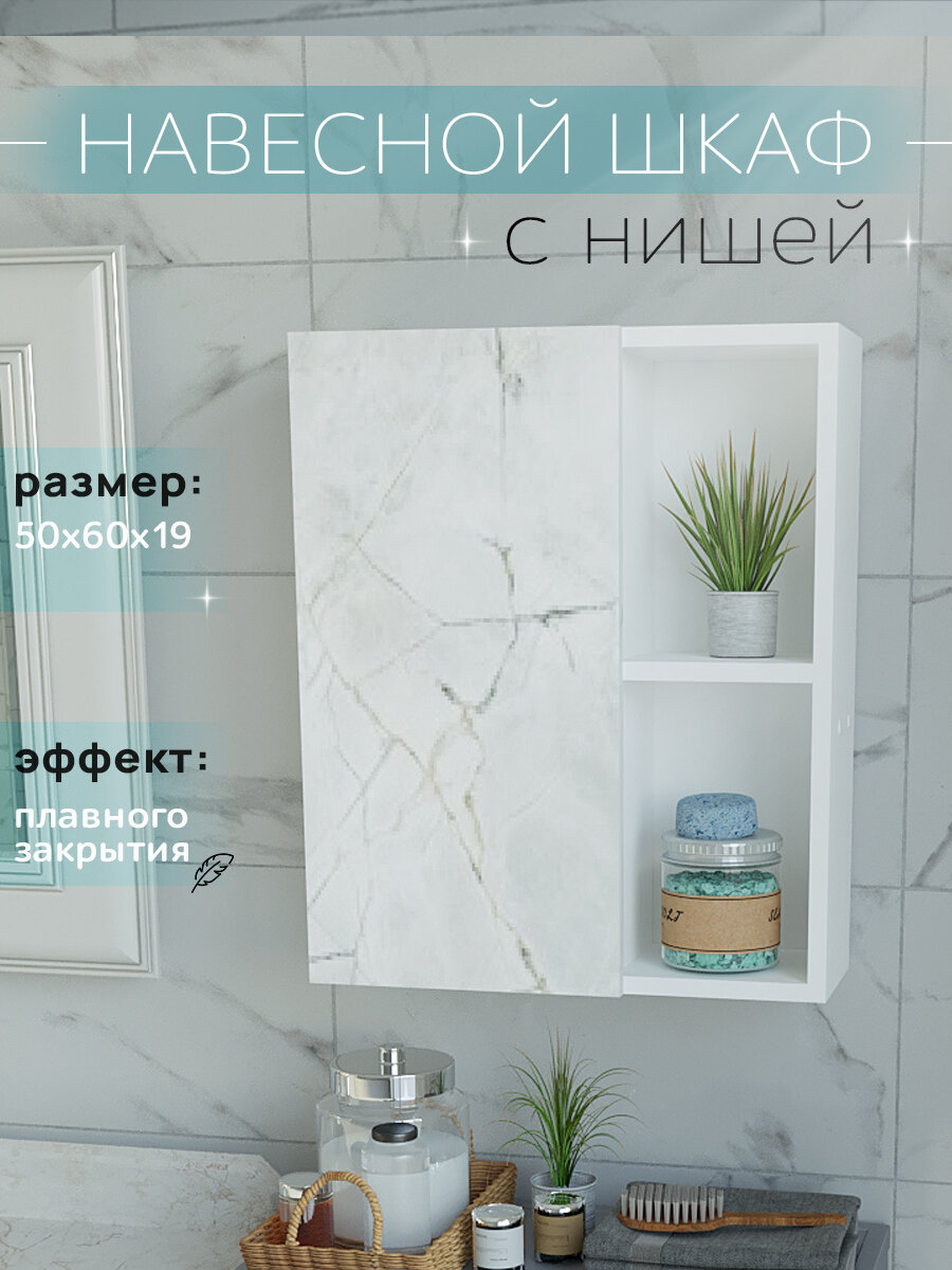 Купить Шкаф навесной с полками 50 см мрамор для ванной и туалета Каскад с доставкой по всей России. Шкаф навесной с полками 50 см мрамор для ванной и туалета Каскад: сравнение цен, характеристики, фото, актуальное наличие и цены.