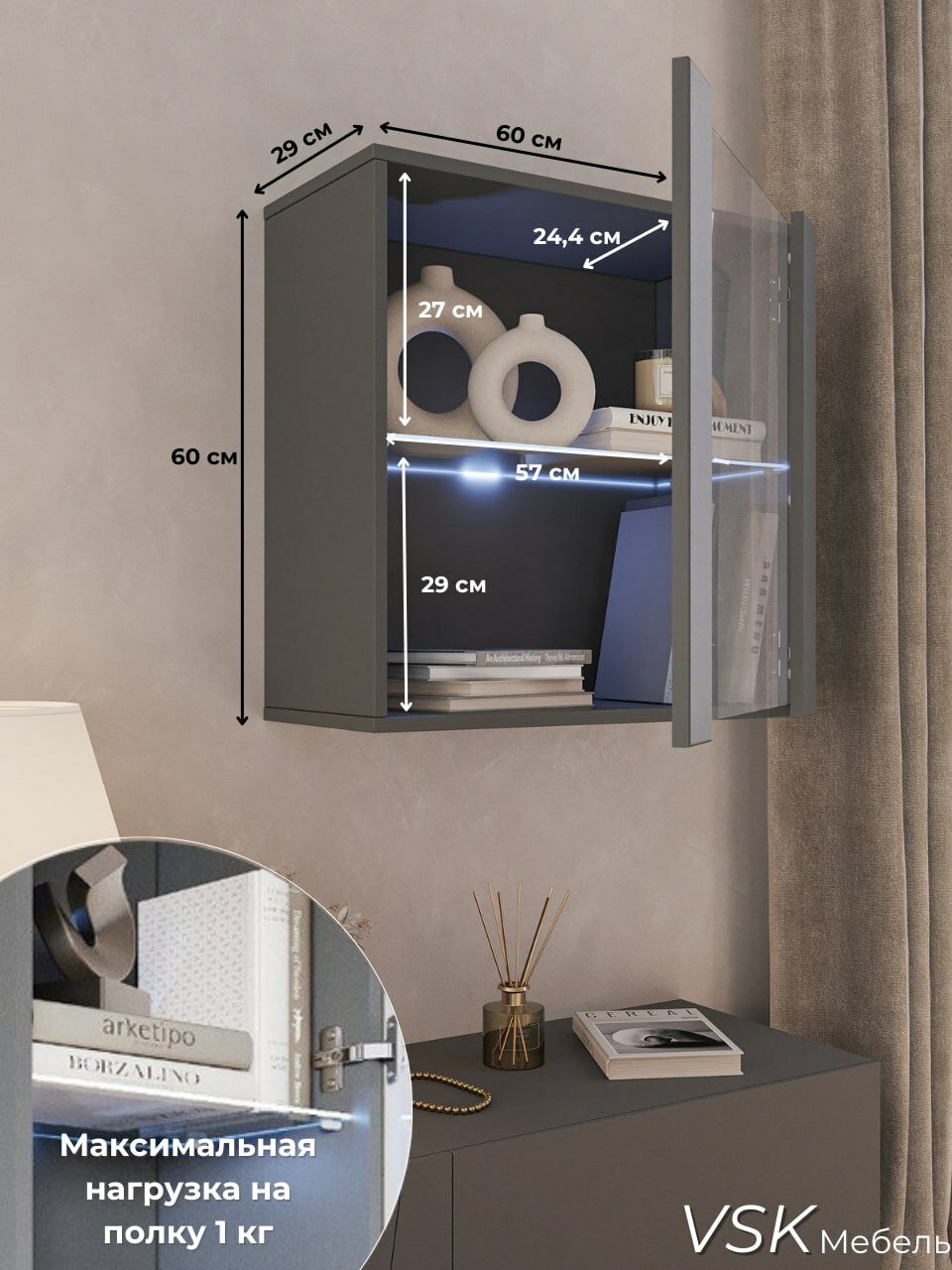 Шкаф навесной , шкаф пенал модульный, шкаф книжный POINT 61, Серый Графит, 60,4х60,4х29 см (ШхВхГ): сравнение цен, характеристики, фото, актуальное наличие и цены.