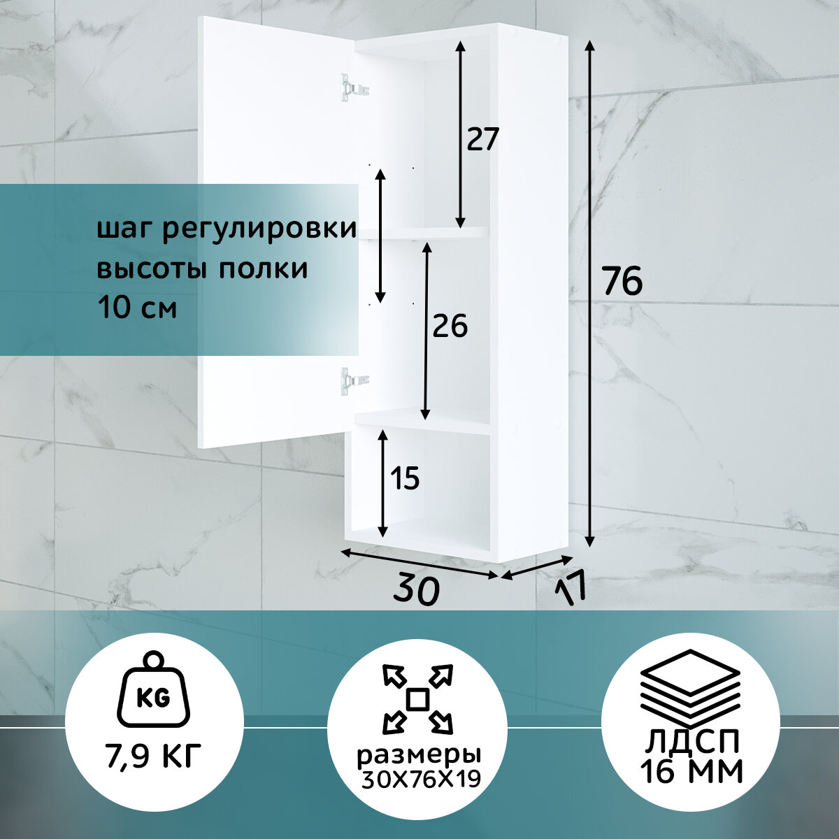 Купить Шкаф навесной узкий, пенал с нишей, 30 х 19 х 76 см белый Уклад с доставкой по всей России. Шкаф навесной узкий, пенал с нишей, 30 х 19 х 76 см белый Уклад: сравнение цен, характеристики, фото, актуальное наличие и цены.