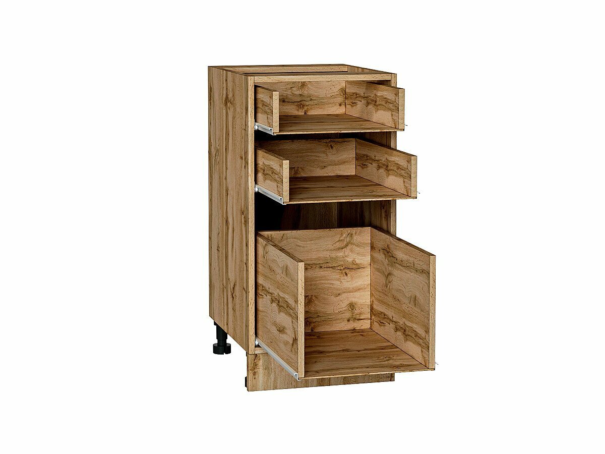 Шкаф нижний с 3-мя ящиками Глетчер, цвет фасада Айленд Силк, цвет каркаса Дуб Вотан, 816*400*478 мм