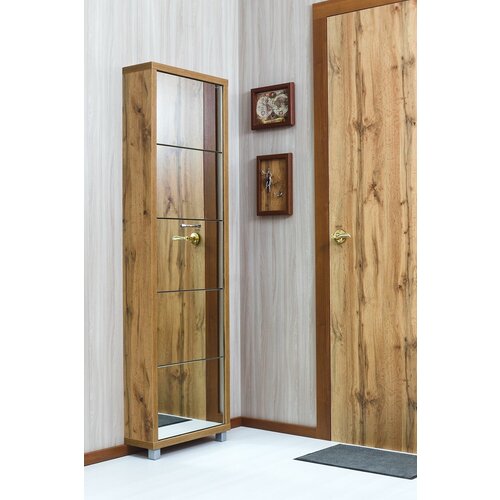 Шкаф обувной Люкс, Дуб вотан 5 отделений, фасад зеркало: сравнение цен, характеристики, фото, актуальное наличие и цены.
