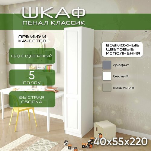 Шкаф пенал 40х55х220 Классик, 5 полок, R, белый/ мдф белый soft touch матовый: сравнение цен, характеристики, фото, актуальное наличие и цены.