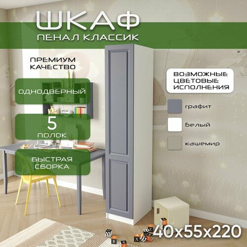 Шкаф пенал 40х55х220 Классик, 5 полок, R, белый/ мдф графит soft touch матовый: сравнение цен, характеристики, фото, актуальное наличие и цены.