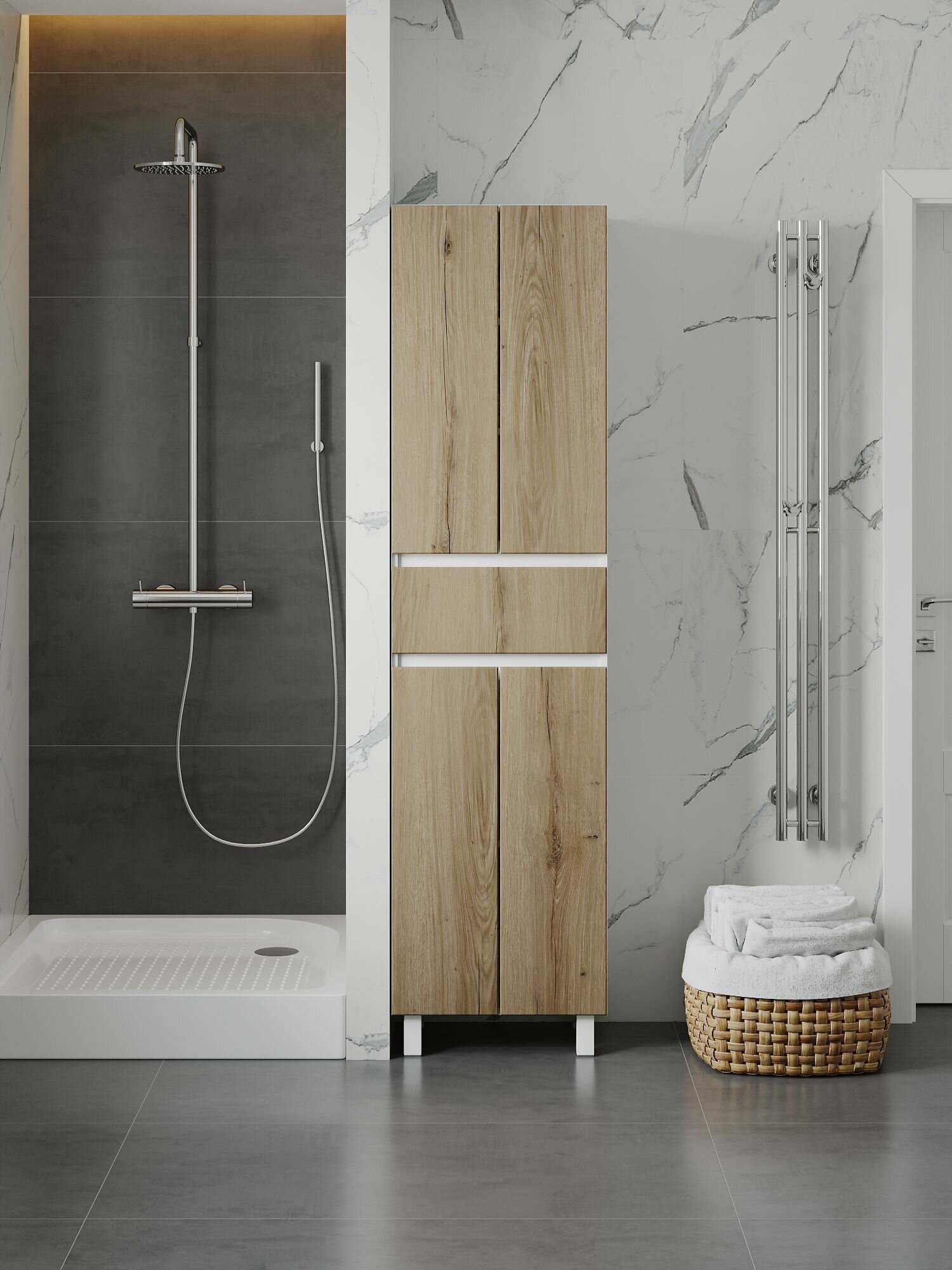 - Высококачественные материалы (ЛДСП корпуса и МДФ фасада) гарантируют долговечность даже в условиях повышенной влажности