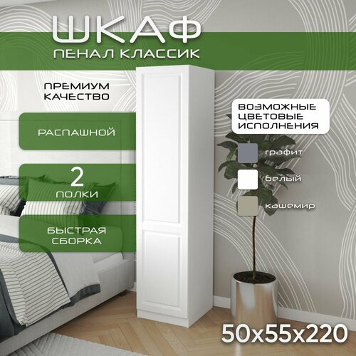 Шкаф пенал 50х55х220 Классик, 2 полки, R, белый/ белый мдф soft touch матовый: сравнение цен, характеристики, фото, актуальное наличие и цены.