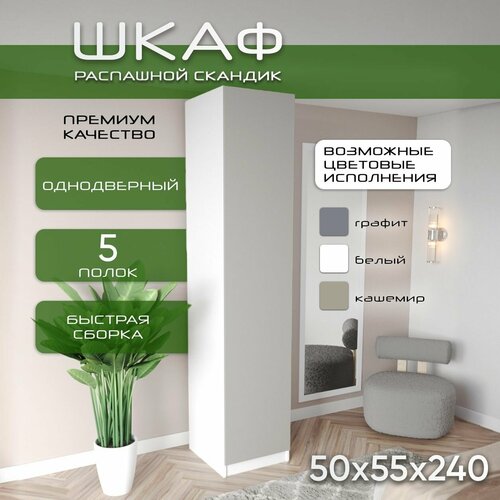 Шкаф пенал 50х55х240 Скандик, лдсп белый/мдф, кашемир soft touch матовый, 5 полок: сравнение цен, характеристики, фото, актуальное наличие и цены.