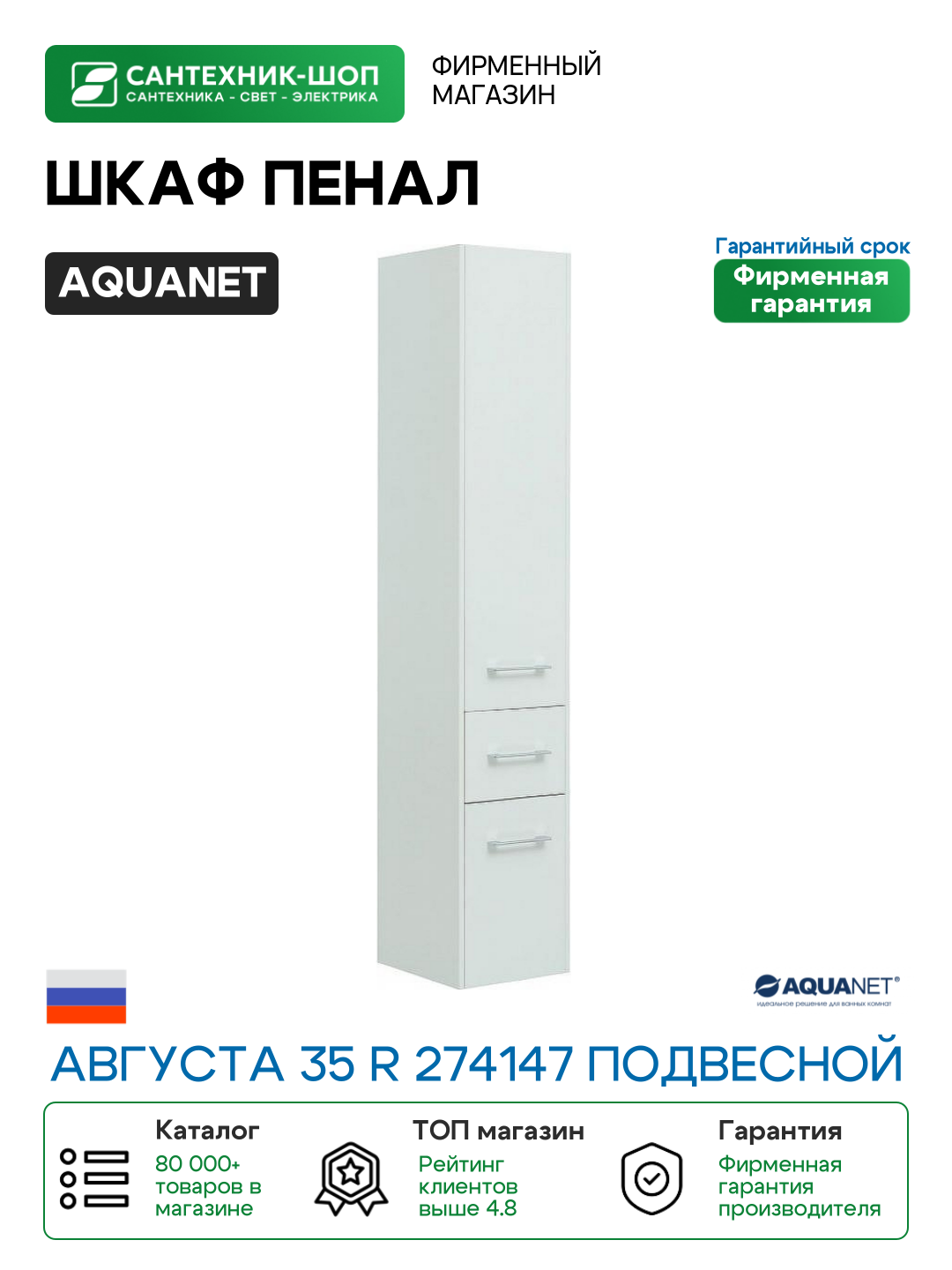 Купить Шкаф пенал Aquanet Августа 35 R 274147 подвесной Белый глянец МДФ / ЛДСП с доставкой по всей России.