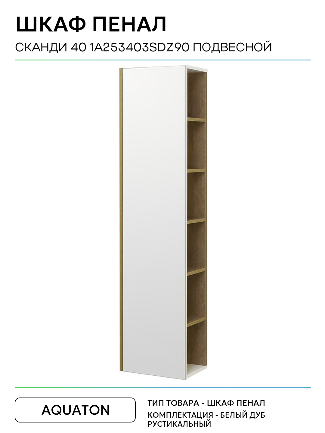 Шкаф пенал Aquaton Сканди 40 1A253403SDZ90 подвесной Белый Дуб рустикальный МДФ / ЛДСП белый с дверками, с открытыми полками: сравнение цен, характеристики, фото, актуальное наличие и цены.