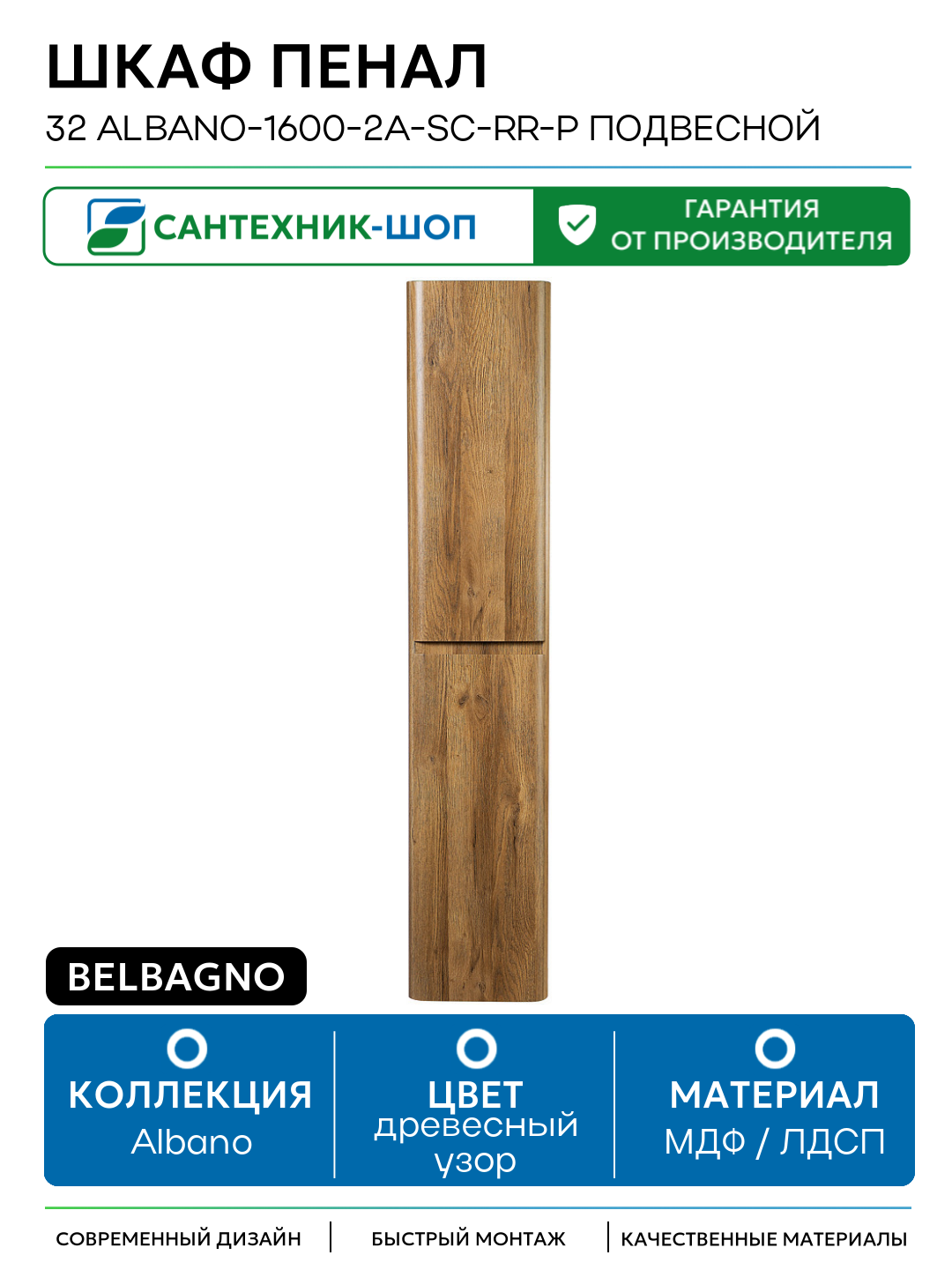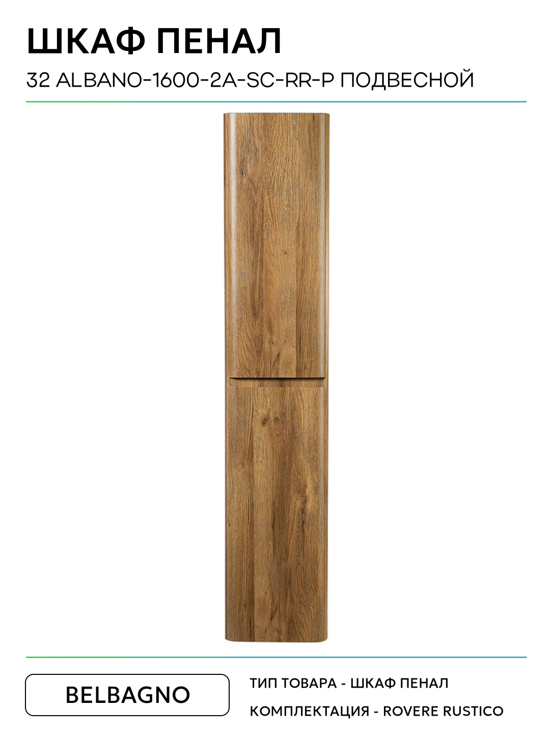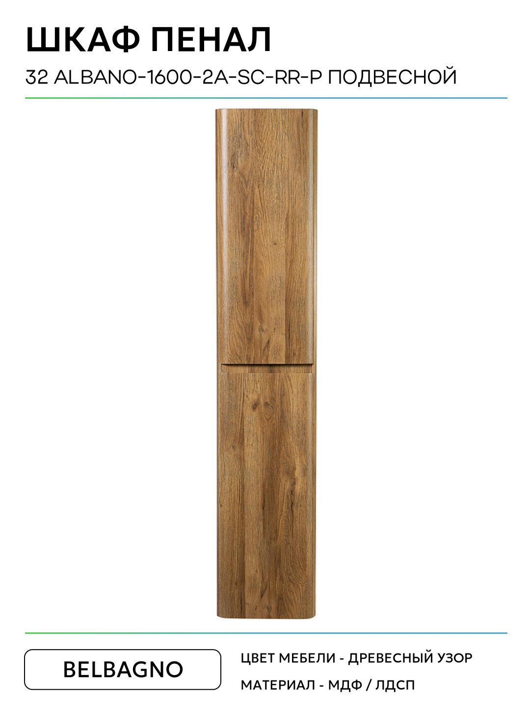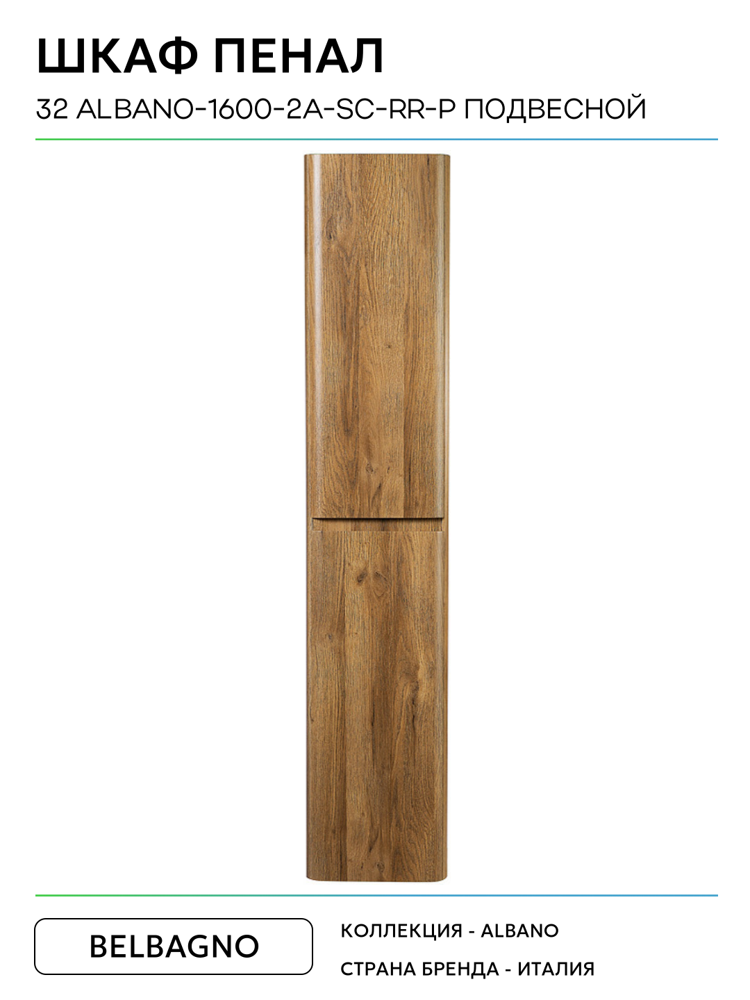 Шкаф пенал BelBagno 32 ALBANO-1600-2A-SC-RR-P подвесной Rovere Rustico МДФ / ЛДСП древесный узор с дверками Италия: сравнение цен, характеристики, фото, актуальное наличие и цены.