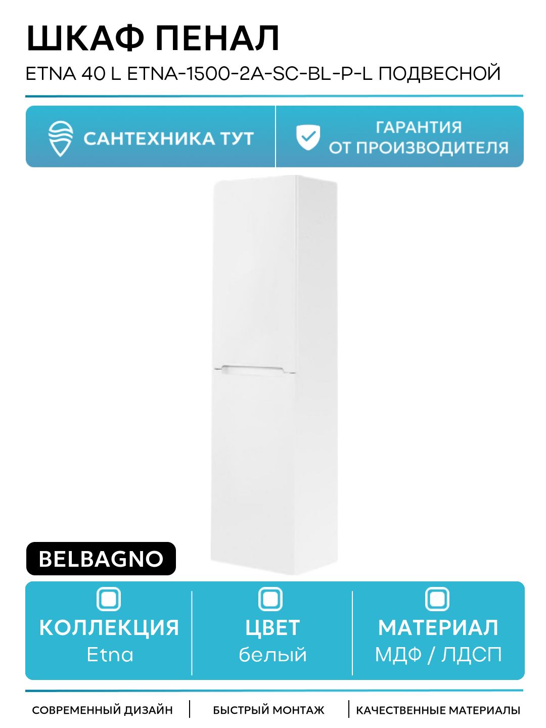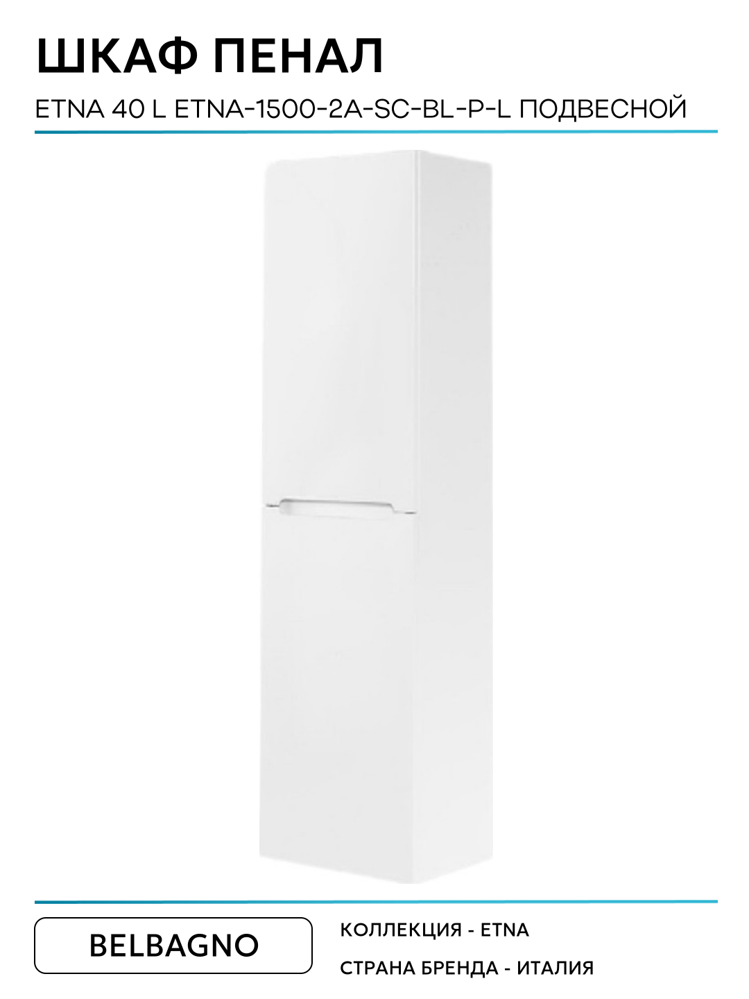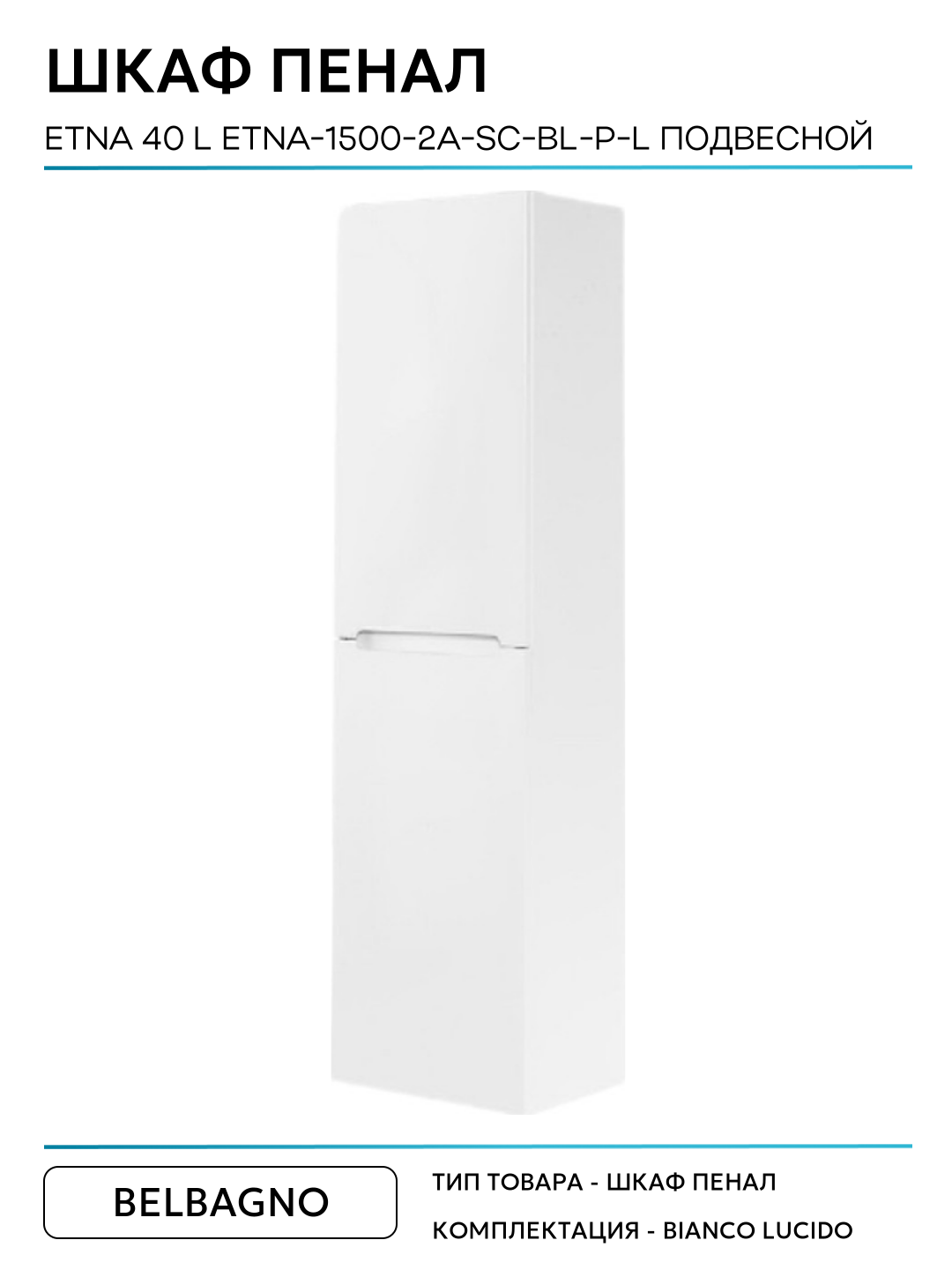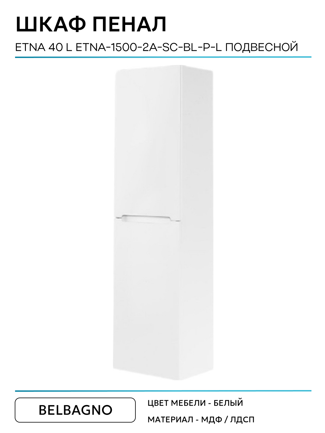 Шкаф пенал BelBagno Etna 40 L ETNA-1500-2A-SC-BL-P-L подвесной Bianco Lucido МДФ / ЛДСП белый с дверками Италия: сравнение цен, характеристики, фото, актуальное наличие и цены.