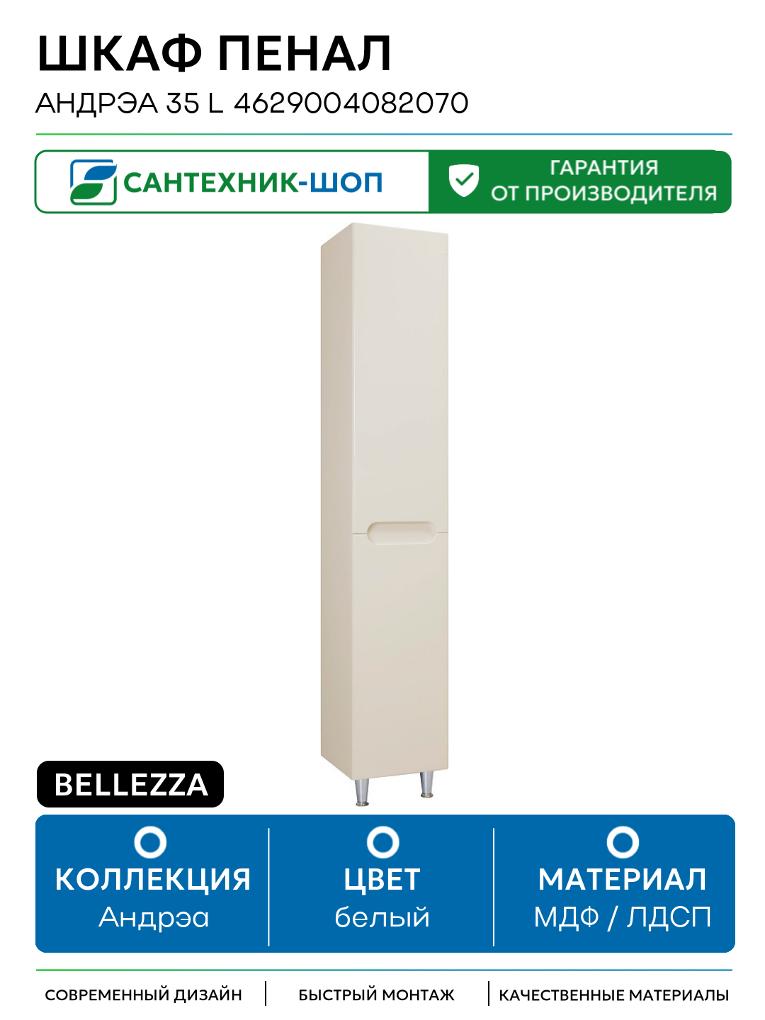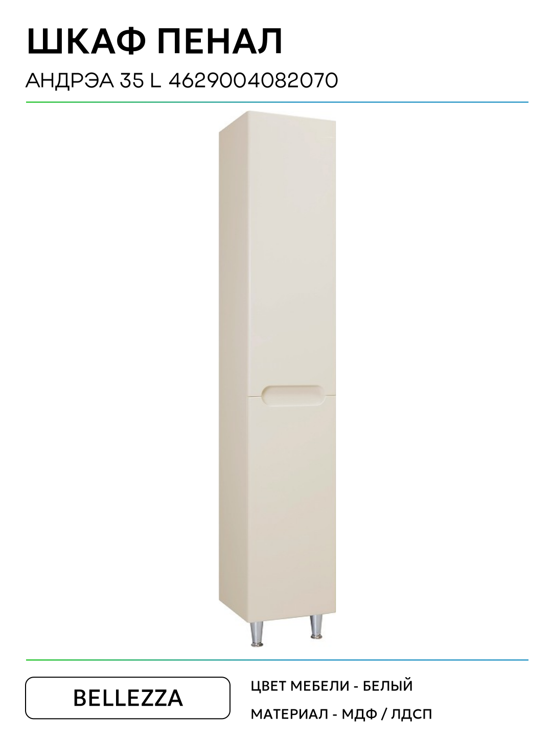 Шкаф пенал Bellezza Андрэа 35 L 4629004082070 Бежевый МДФ / ЛДСП белый с дверками: сравнение цен, характеристики, фото, актуальное наличие и цены.