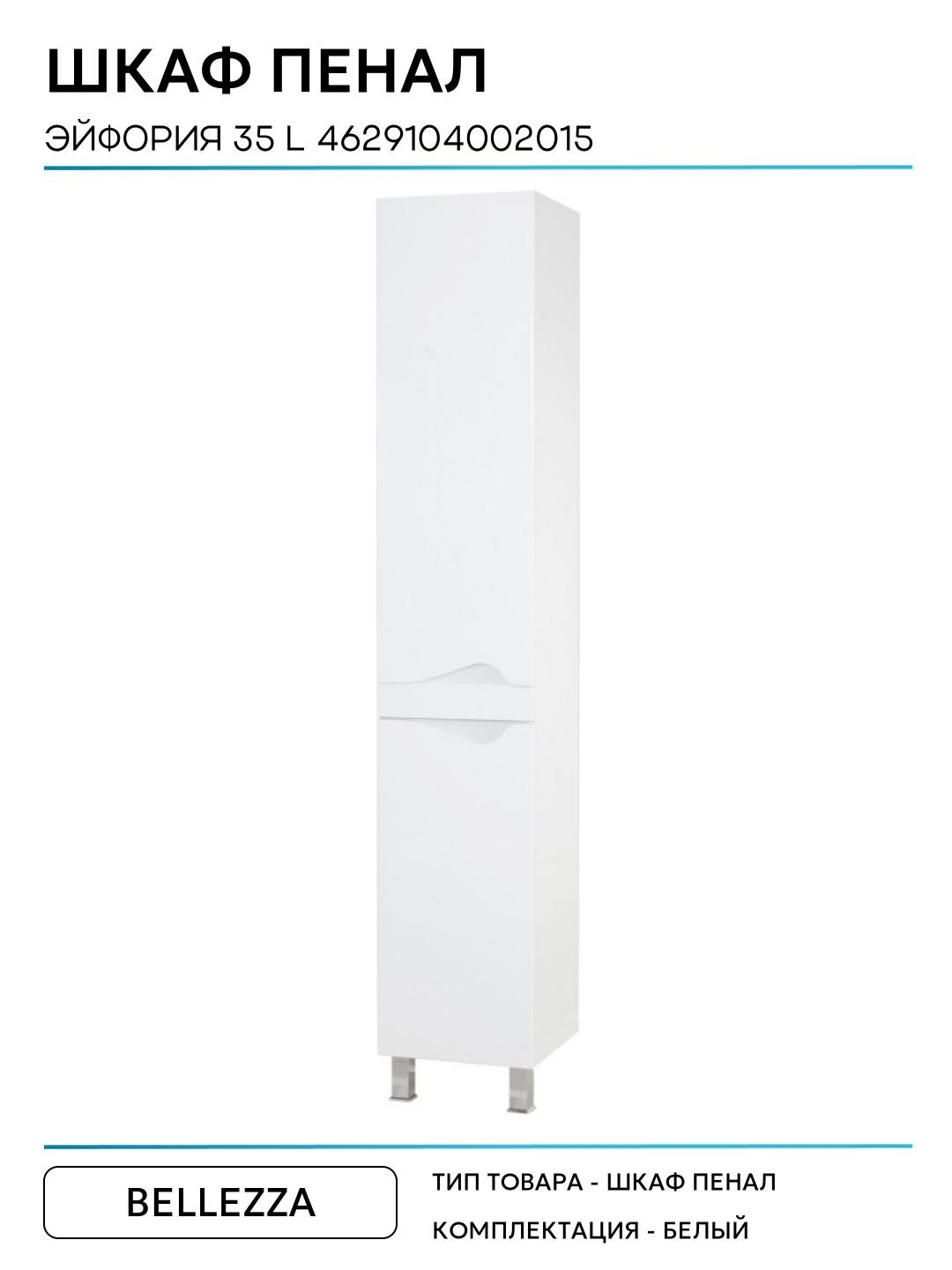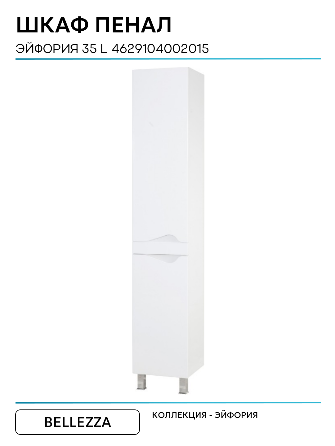 Купить Шкаф пенал Bellezza Эйфория 35 L 4629104002015 Белый МДФ / ЛДСП белый с дверками с доставкой по всей России.