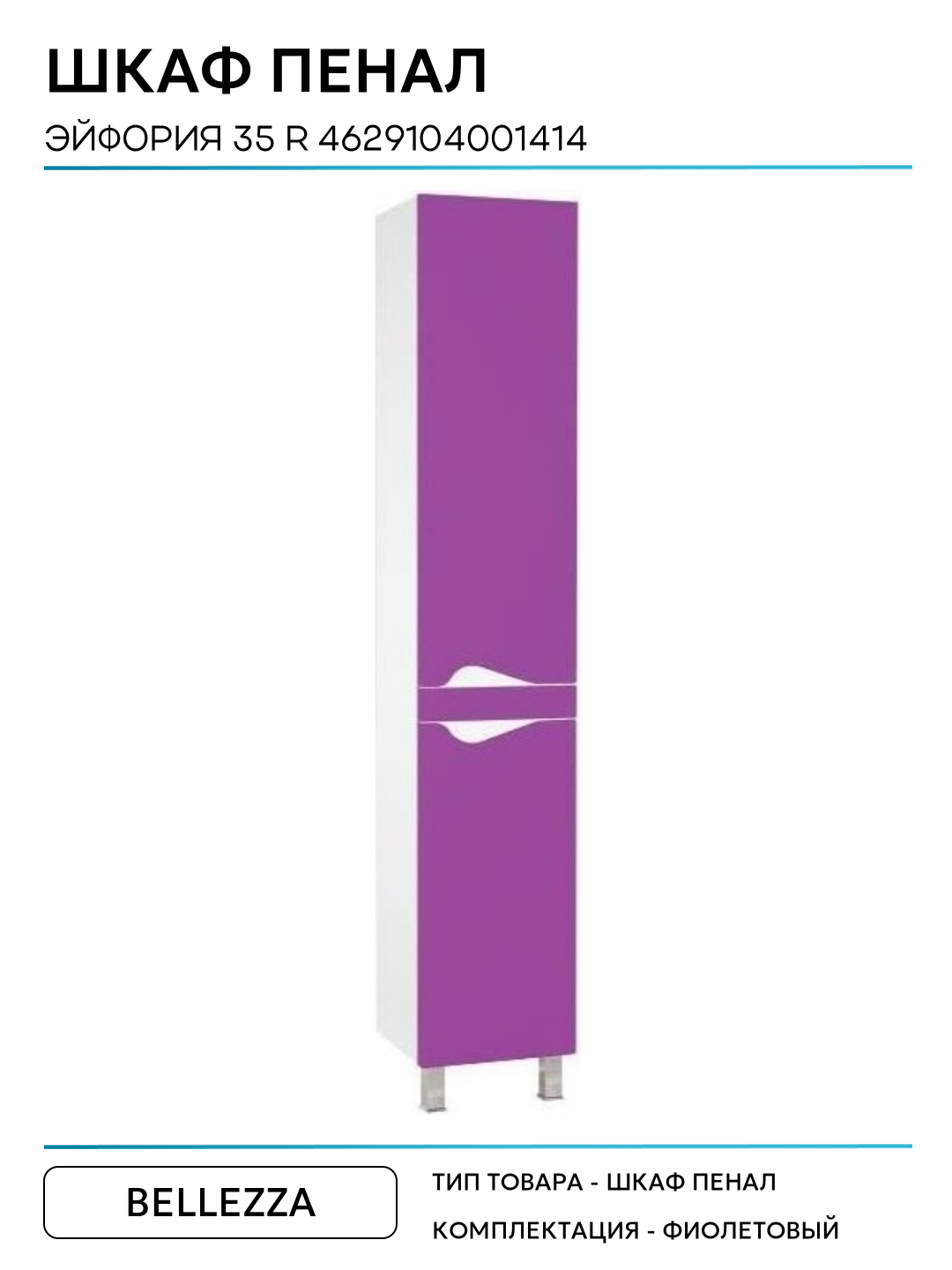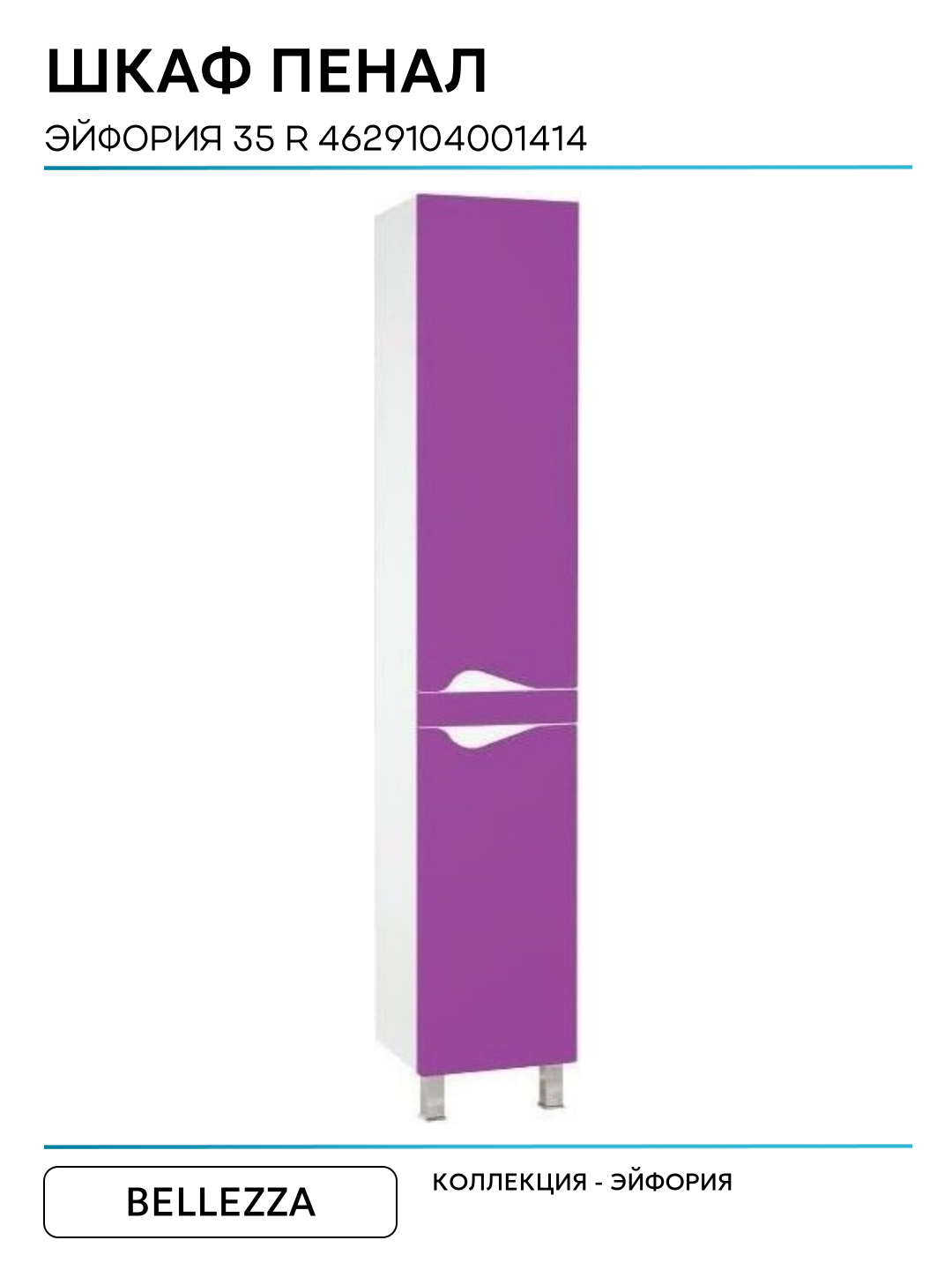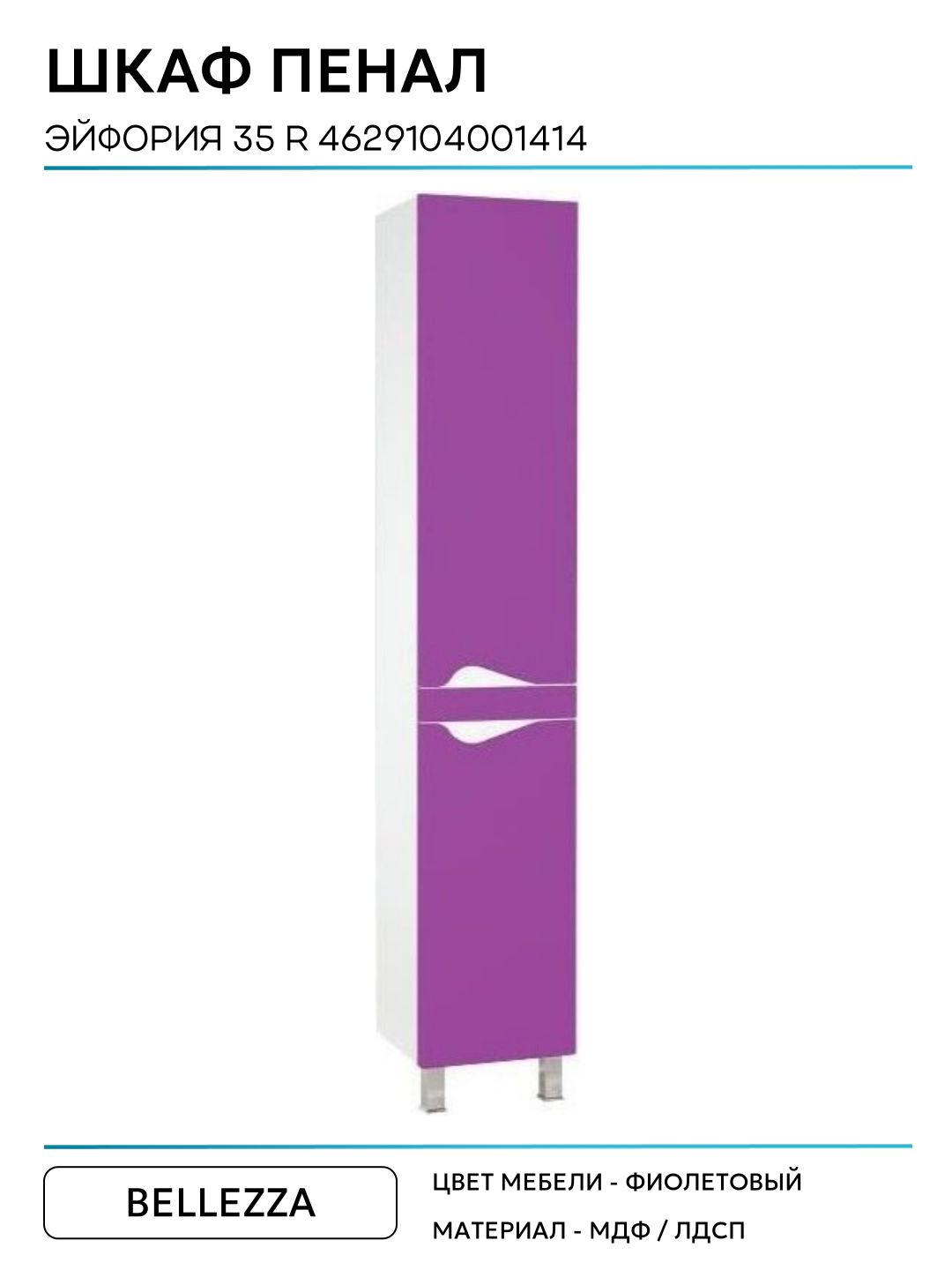 Купить Шкаф пенал Bellezza Эйфория 35 R 4629104001414 Фиолетовый МДФ / ЛДСП фиолетовый с дверками с доставкой по всей России.