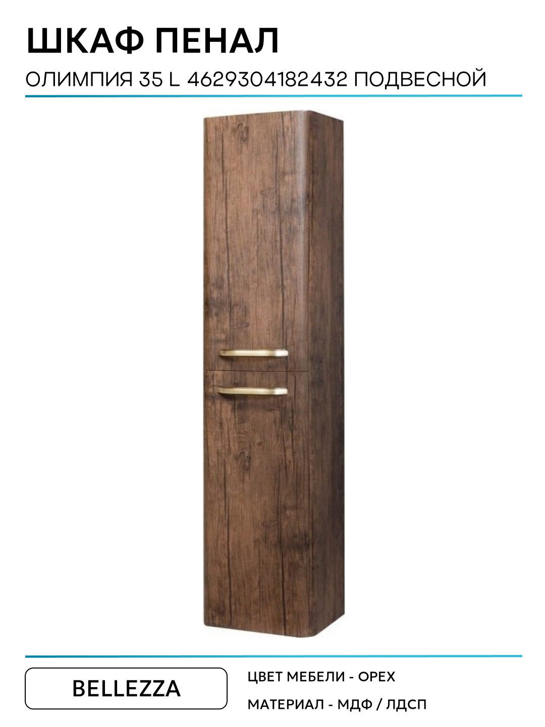 Шкаф пенал Bellezza Олимпия 35 L 4629304182432 подвесной Орех МДФ / ЛДСП орех с дверками: сравнение цен, характеристики, фото, актуальное наличие и цены.