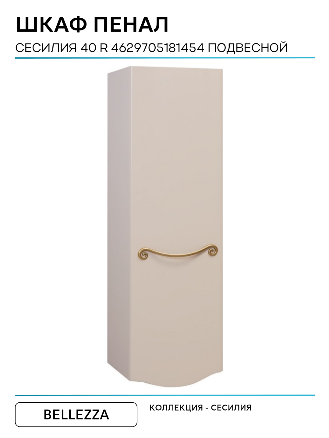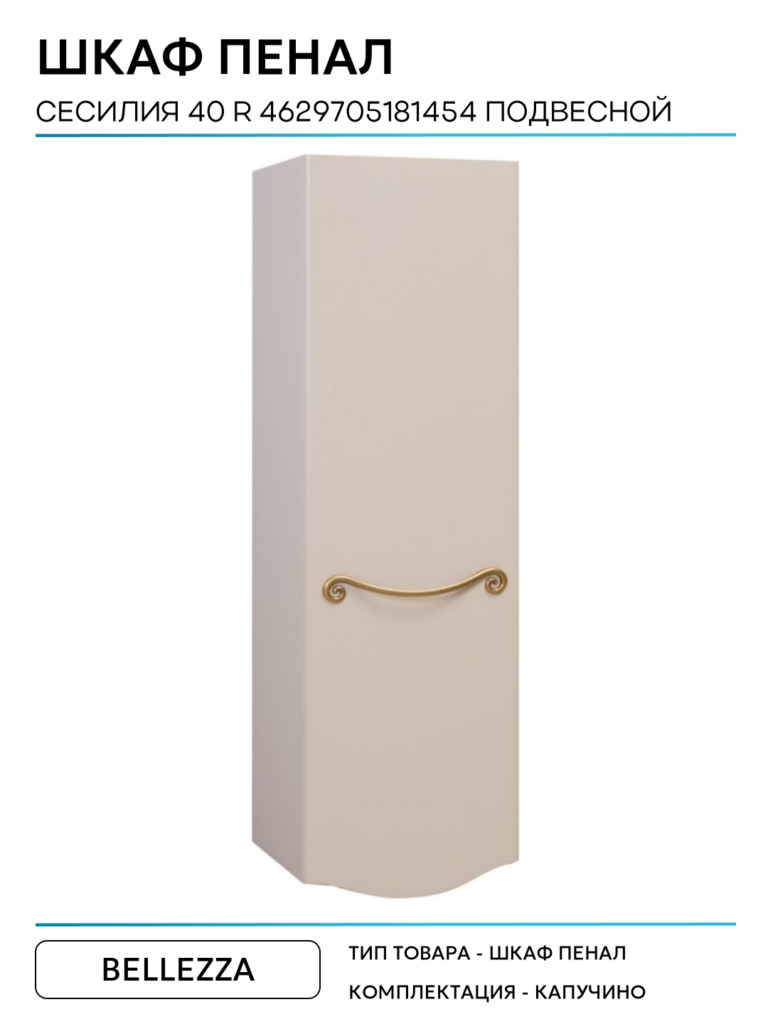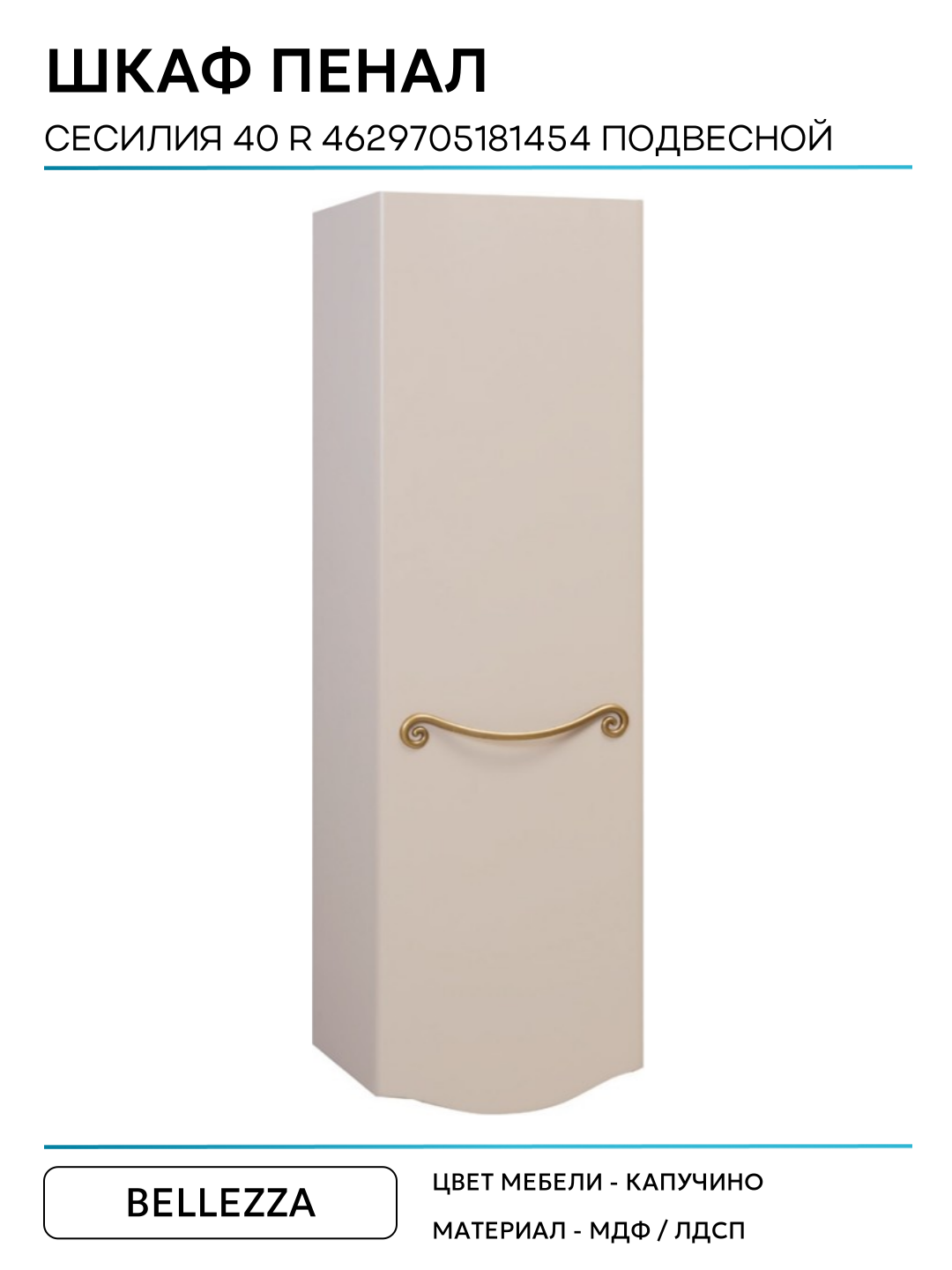 Купить Шкаф пенал Bellezza Сесилия 40 R 4629705181454 подвесной Капучино МДФ / ЛДСП капучино с дверками с доставкой по всей России.