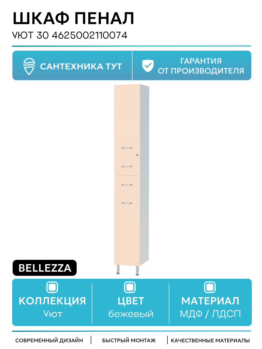 Шкаф пенал Bellezza Уют 30 4625002110074 Бежевый МДФ / ЛДСП бежевый с дверками, с ящиками: сравнение цен, характеристики, фото, актуальное наличие и цены.