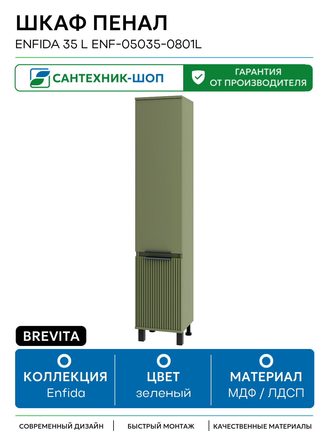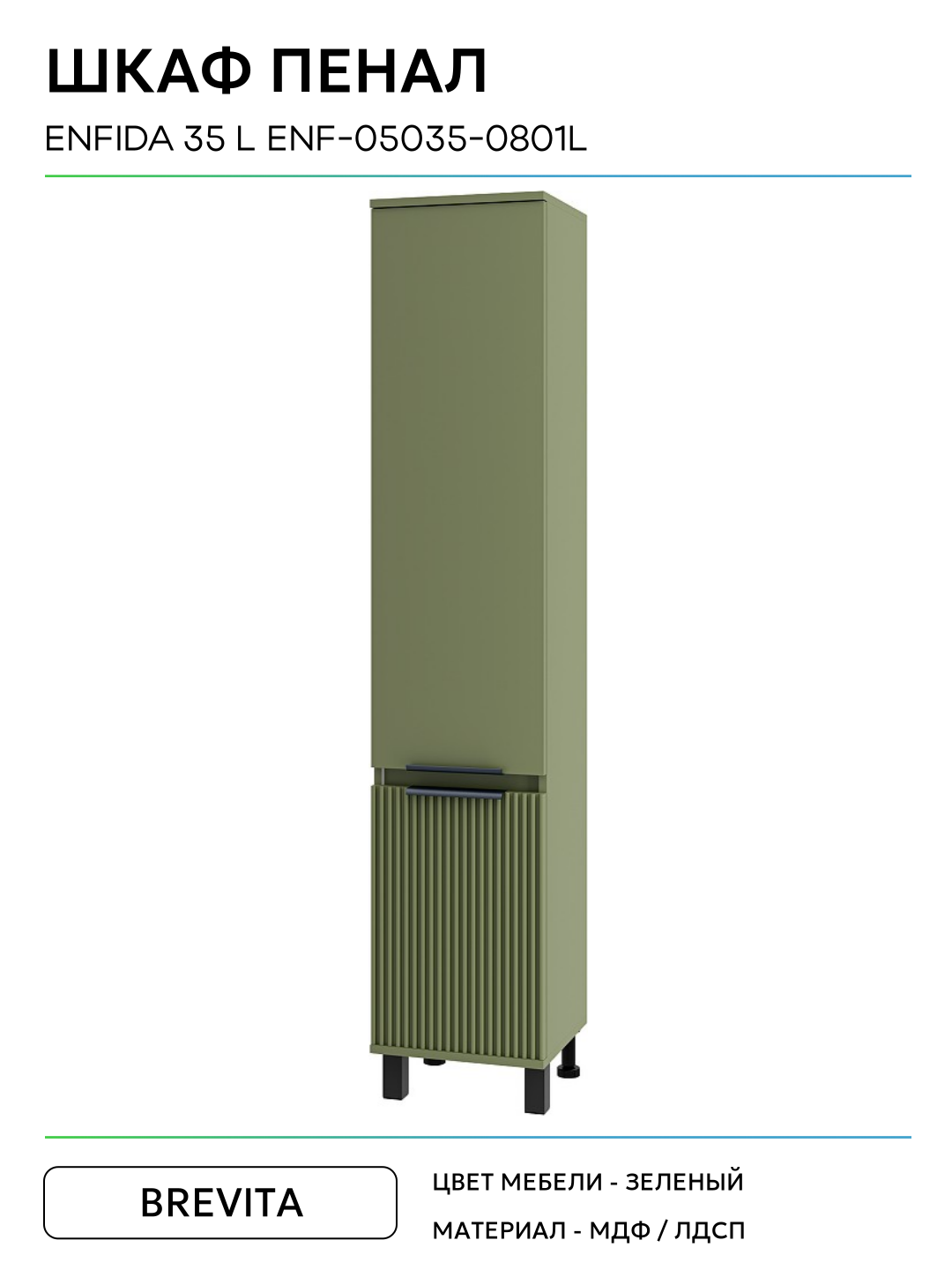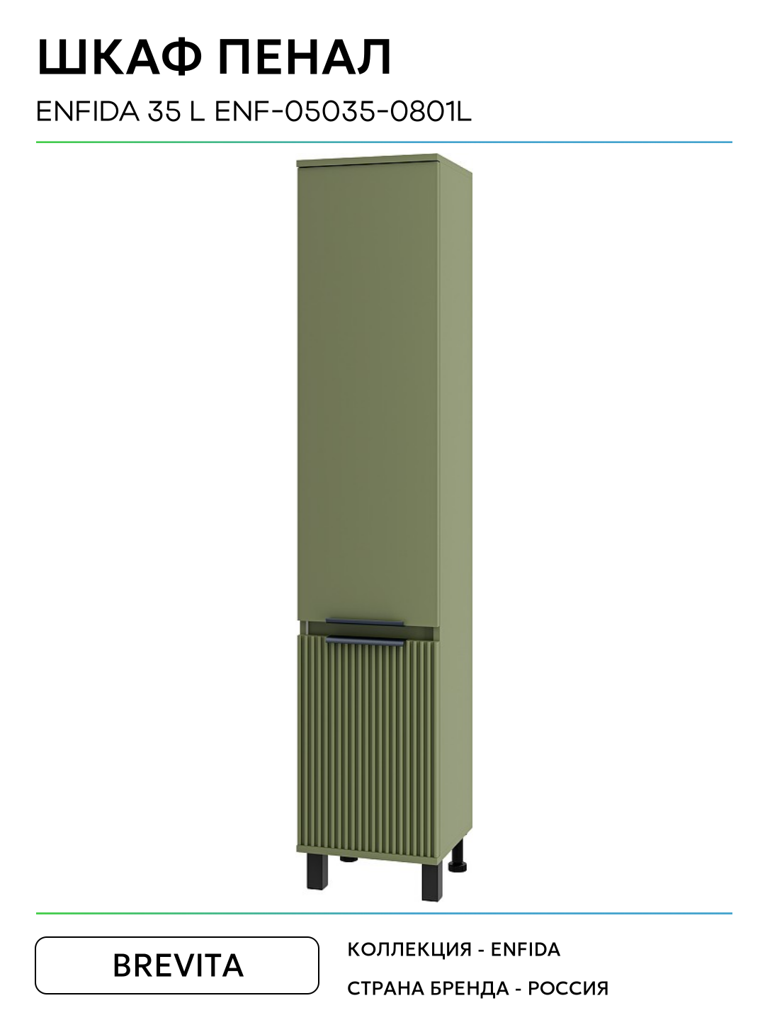 Шкаф пенал Brevita Enfida 35 L ENF-05035-0801L Зеленый матовый МДФ / ЛДСП зеленый с дверками Россия: сравнение цен, характеристики, фото, актуальное наличие и цены.