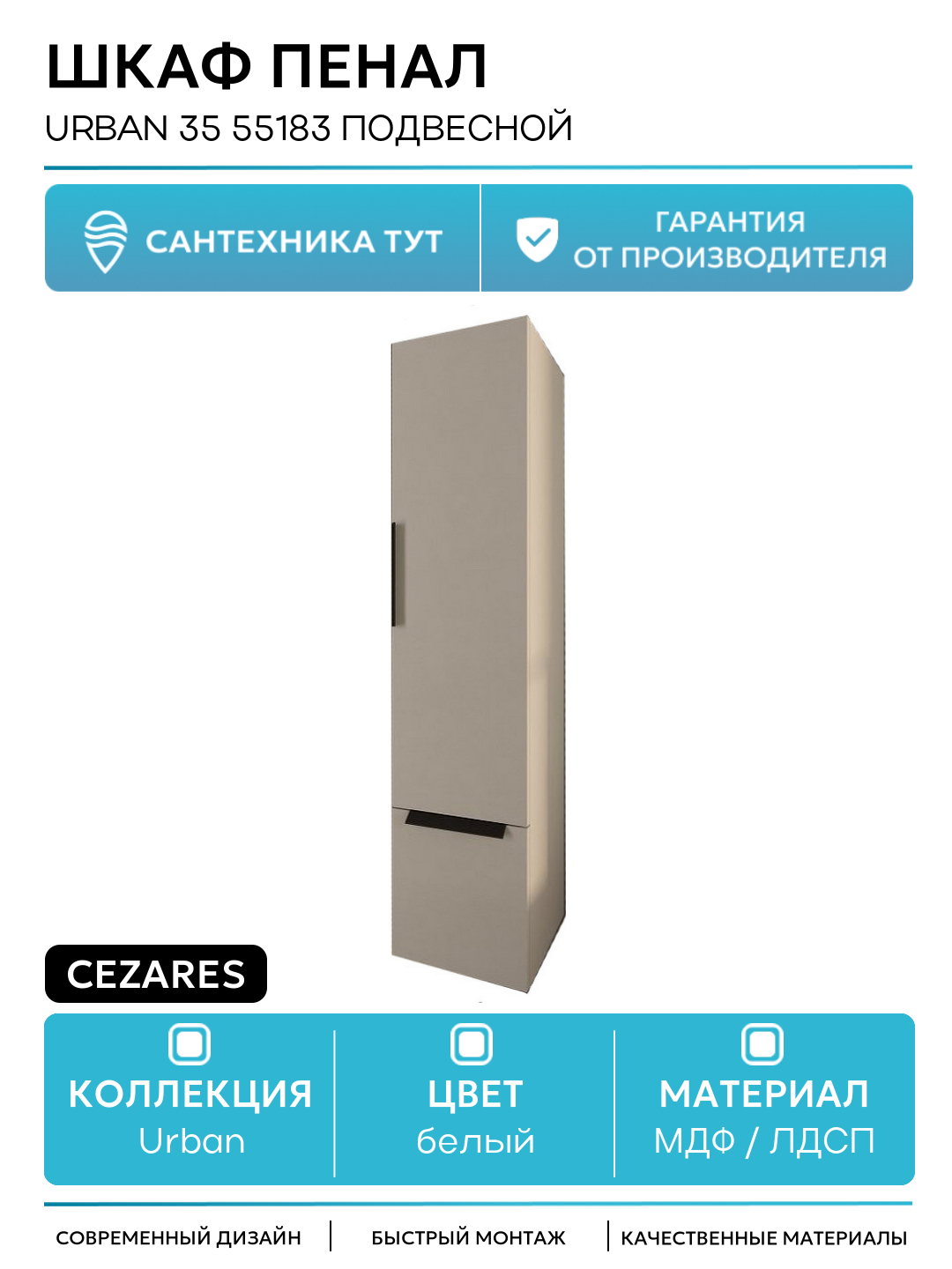 Шкаф пенал Cezares Urban 35 55183 подвесной Spatolato bianco МДФ / ЛДСП белый с дверками, с ящиками: сравнение цен, характеристики, фото, актуальное наличие и цены.