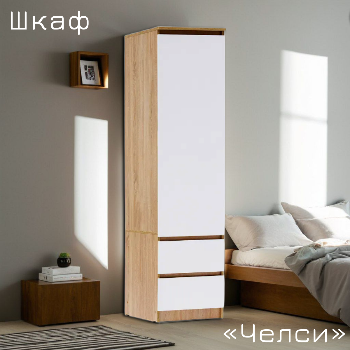 Купить Шкаф-Пенал Челси для одежды с 2 ящиками, 45х51х180 см, Белый глянец холодный/Дуб Сонома из ЛДСП с доставкой по всей России. Шкаф-Пенал Челси для одежды с 2 ящиками, 45х51х180 см, Белый глянец холодный/Дуб Сонома из ЛДСП: сравнение цен, характеристики, фото, актуальное наличие и цены.