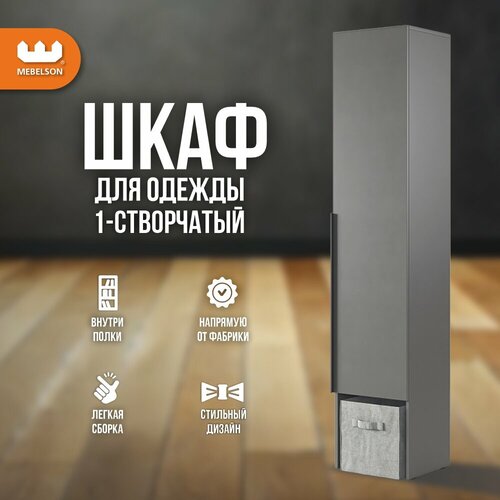 Шкаф-пенал для одежды однодверный «Баско» L400 с полками, цвет Графит, 40*35*195 см, Mebelson: сравнение цен, характеристики, фото, актуальное наличие и цены.
