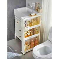 Шкаф-пенал для ванной и туалета белый напольный, узкая полка, держатель для туалетной бумаги