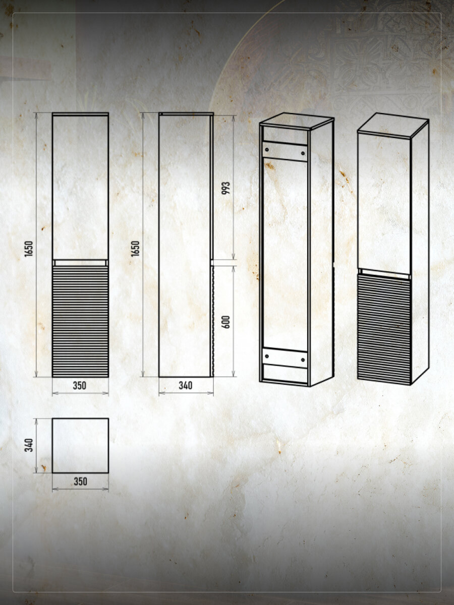 Шкаф-пенал Brevita Dakota 35x165 DAK-050350-19/02П правый