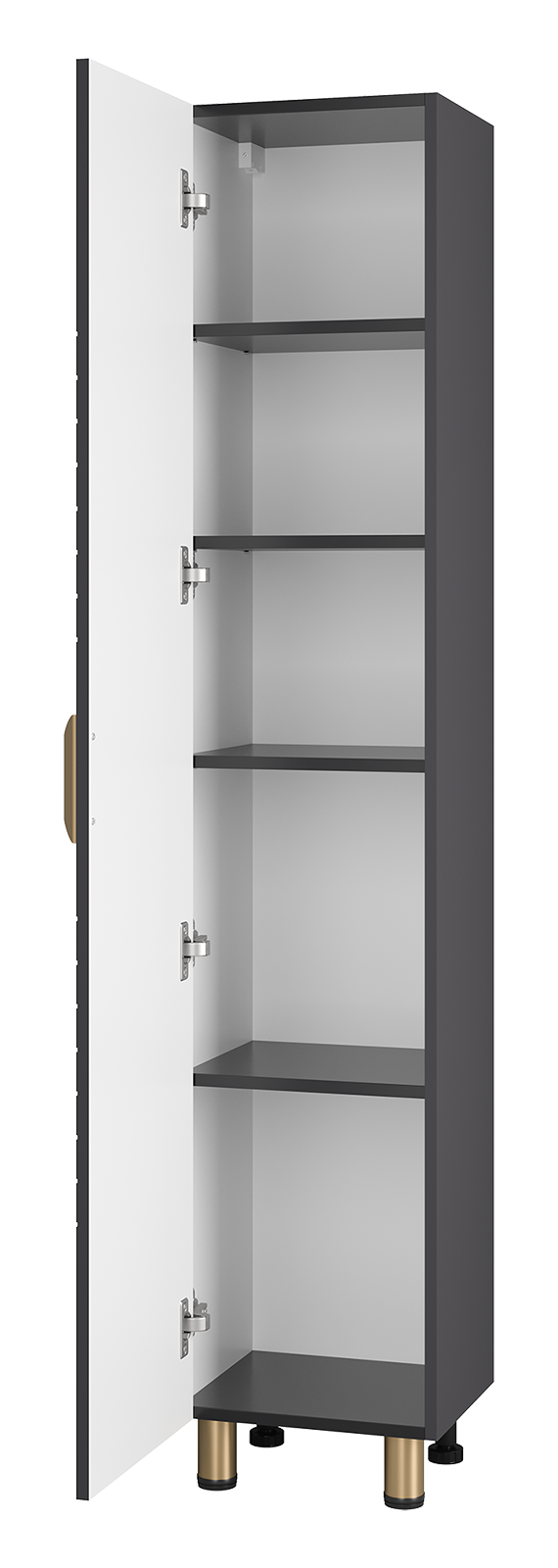Особенность серии мебели для ванной Brevita Gloster – оригинальный узор фасадов, в котором чередуются вертикальные и горизонтальные параллельные линии, формируя необычную геометрическую композицию. Корпус и фронтальная часть в темно-серый глубокий цвет с матовой фактурой, что придает изделиям изысканный и эффектный вид. Завершают формирование образа мебели широкие ручки золотистого цвета. Крепление: подвесы 2 шт, шуруп с Г-образным крючком 2 шт.