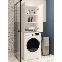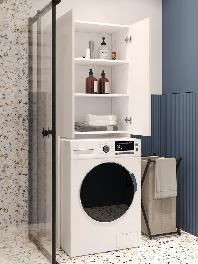 Шкаф-пенал для ванной и туалета белый напольный, узкая полка, держатель для туалетной бумаги