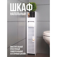 Купить Шкаф-пенал для ванной и туалета белый напольный, узкая полка, держатель для туалетной бумаги с доставкой по всей России.