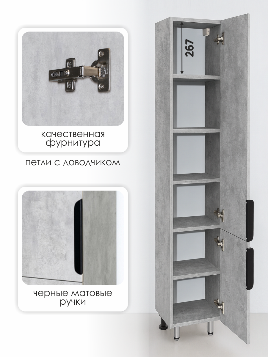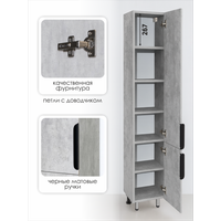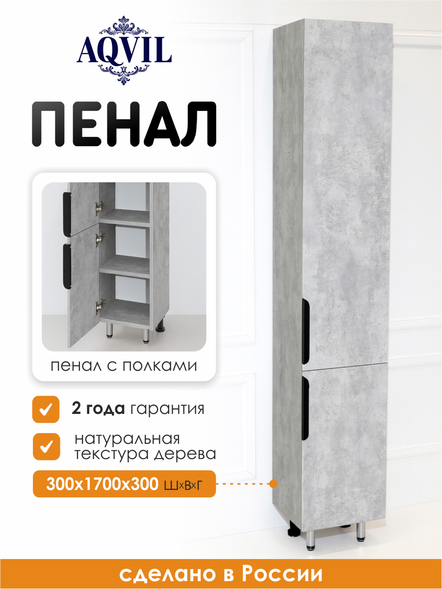 AQVIL Шкаф пенал для ванной напольный с полками универсальный Berta, 30*30*170 см, Цемент Светлый: сравнение цен, характеристики, фото, актуальное наличие и цены.