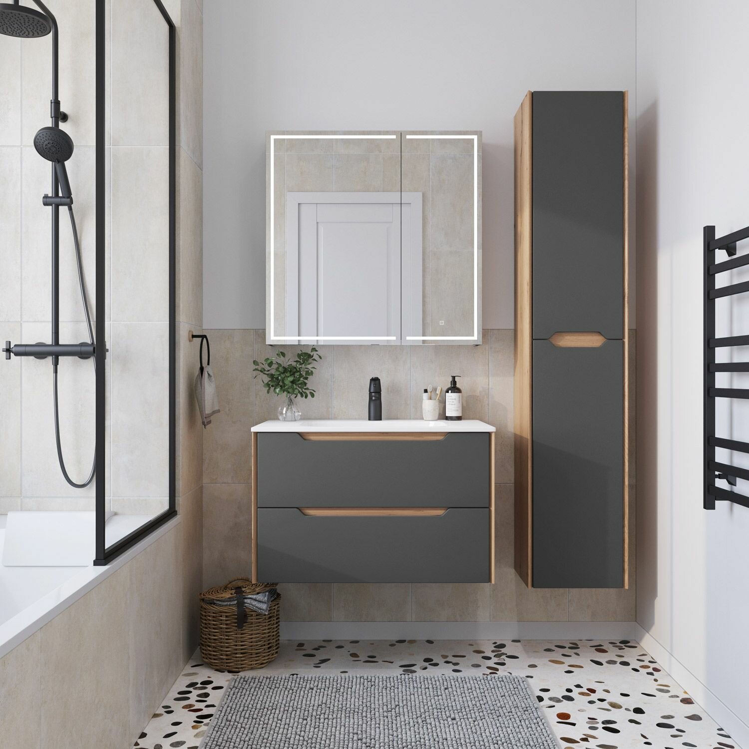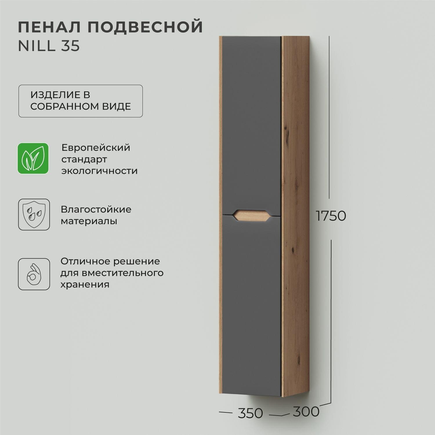 Купить Шкаф пенал для ванной подвесной Итана Nill 35 350х300х1750 Графит с доставкой по всей России. Шкаф пенал для ванной подвесной Итана Nill 35 350х300х1750 Графит: сравнение цен, характеристики, фото, актуальное наличие и цены.
