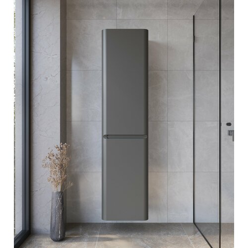 Купить Шкаф пенал для ванной с корзиной для белья подвесной левый аквакрафт Vita графит с доставкой по всей России.