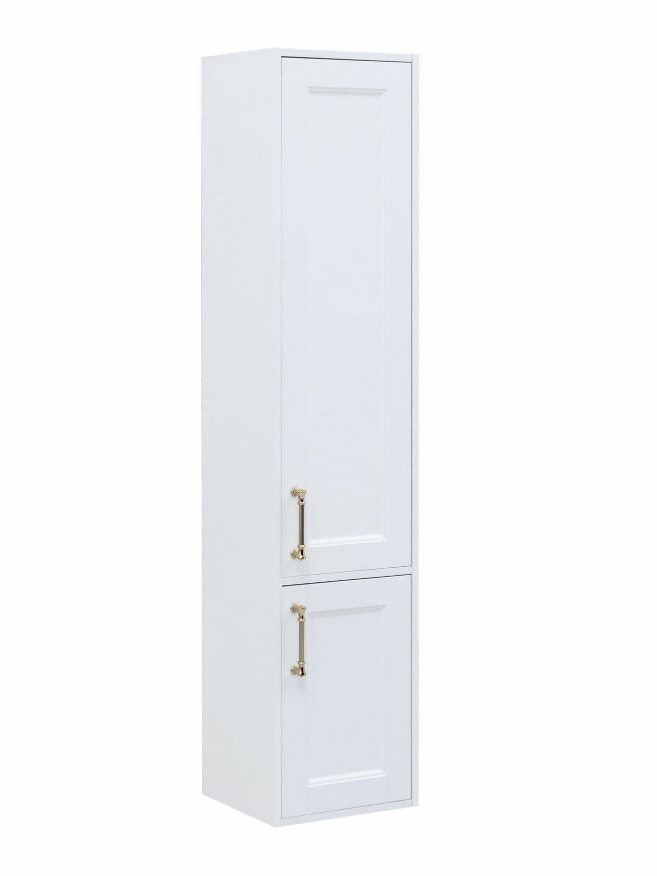 Купить Шкаф пенал для ванной с полками навесной в ванную 35 белый сатин ручки золото Aquanet Бостон New с доставкой по всей России.
