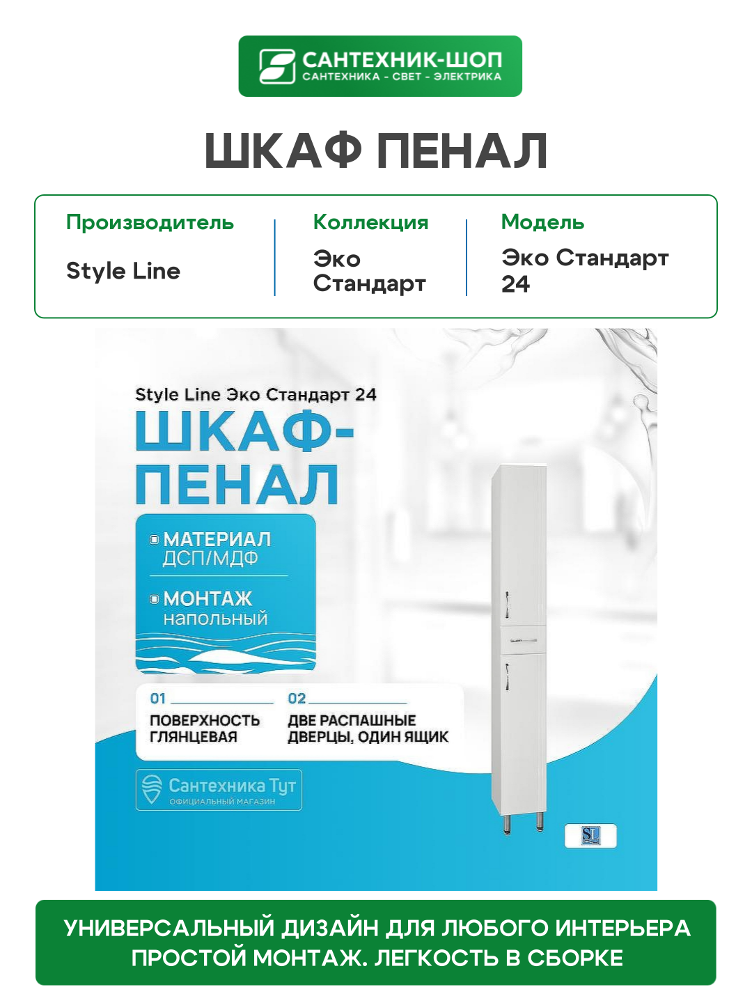 Купить Шкаф-пенал для ванной Style Line Эко Стандарт 24 напольный, 24 см, белый, подвесной с доставкой по всей России. Шкаф-пенал для ванной Style Line Эко Стандарт 24 напольный, 24 см, белый, подвесной: сравнение цен, характеристики, фото, актуальное наличие и цены.