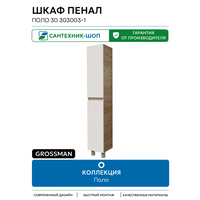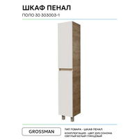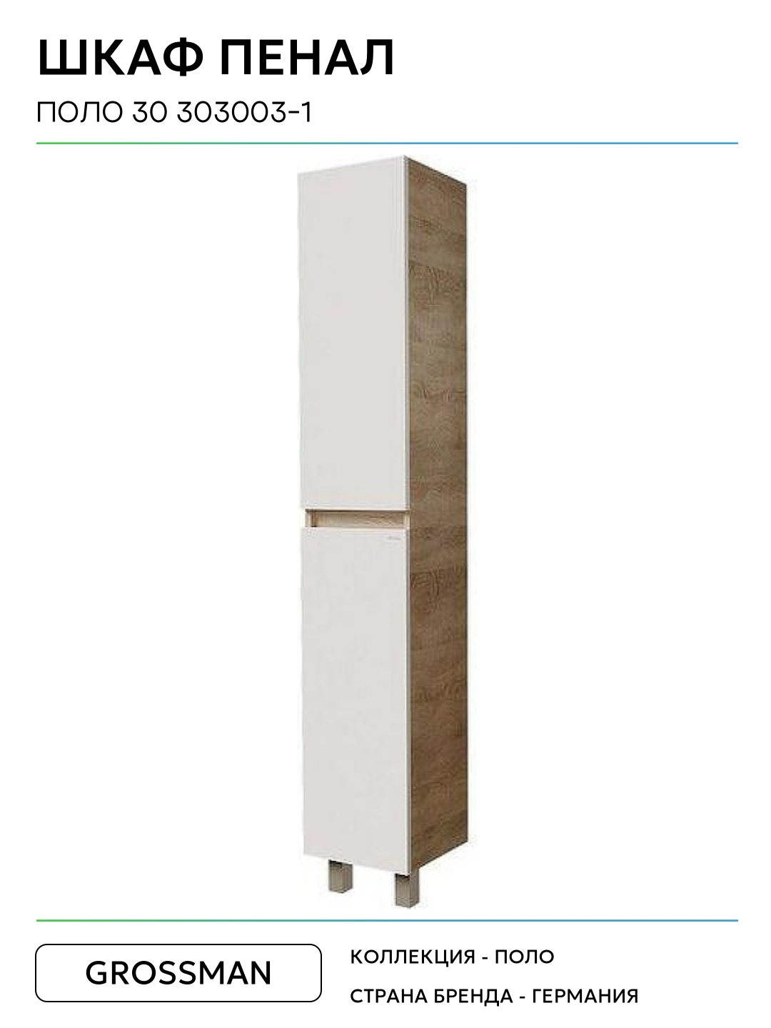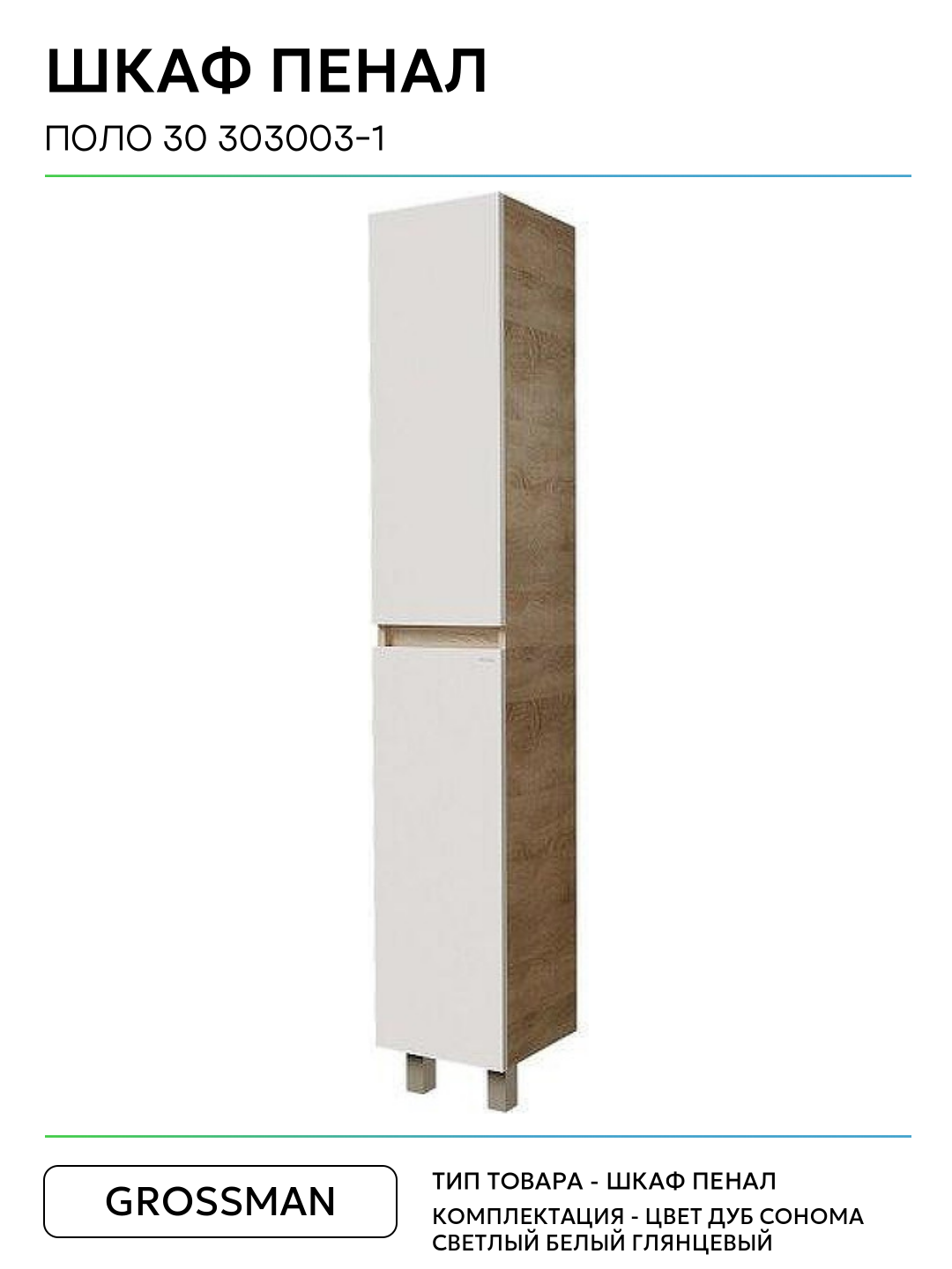 Шкаф пенал Grossman Поло 30 303003-1 цвет Дуб сонома светлый Белый глянцевый Германия: сравнение цен, характеристики, фото, актуальное наличие и цены.