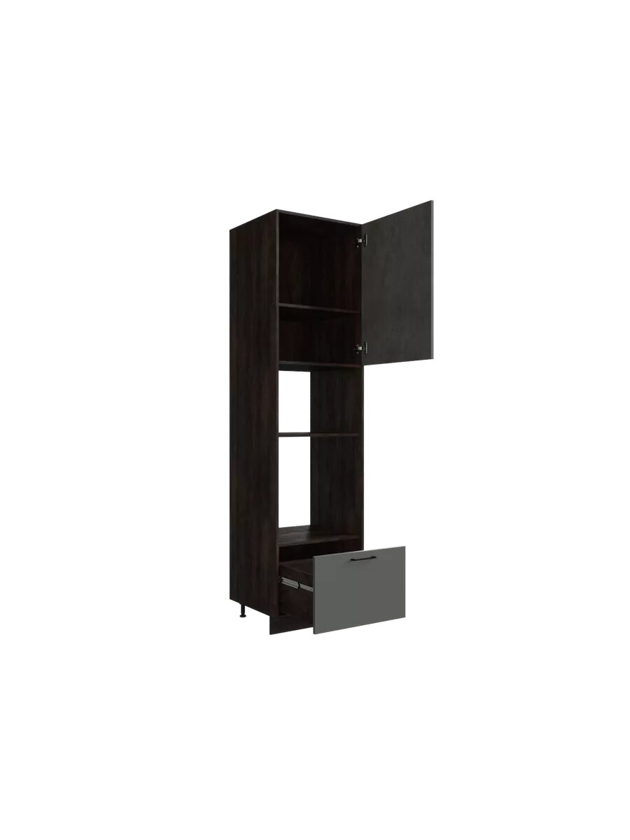 Шкаф пенал кухонный напольный, SURA kitchen space, Хелмер, с нишей под духовку, с 1-ой дверцой и ящиком, серый, 60х233,6х57,4 см