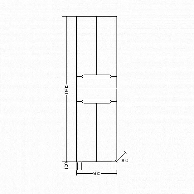 Два ящика полного выдвижения на направляющих бокового монтажа, без доводчиков. Ширина:500 мм Глубина:300 мм Высота:1900 мм Вес:48 кг