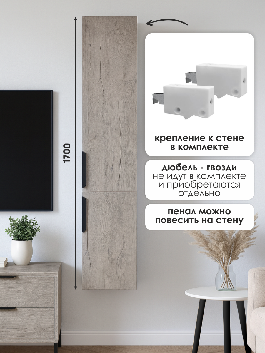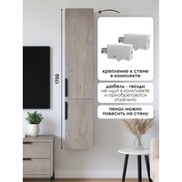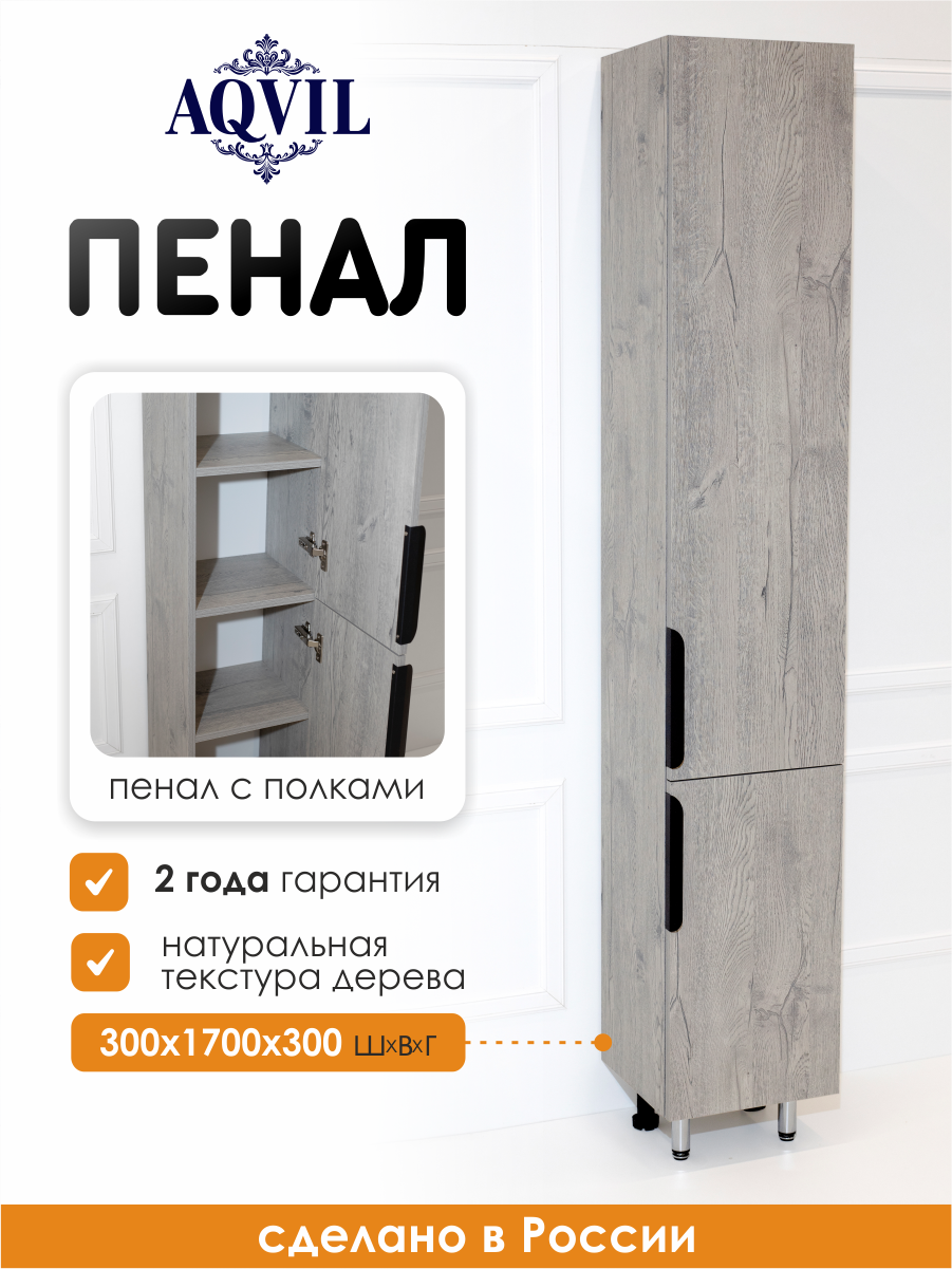 AQVIL Шкаф пенал для ванной напольный с полками универсальный Berta, 30*30*170 см, Дуб Апрельский нордик: сравнение цен, характеристики, фото, актуальное наличие и цены.