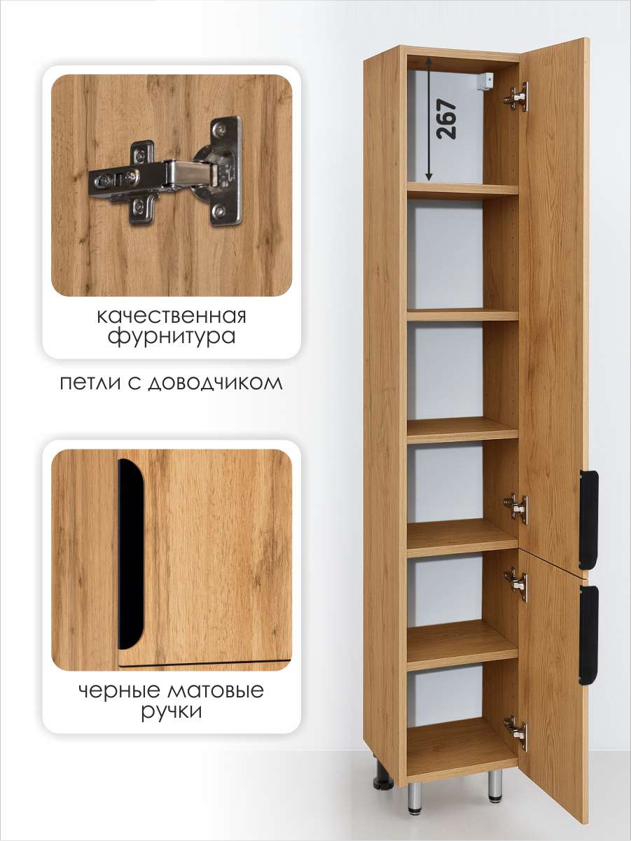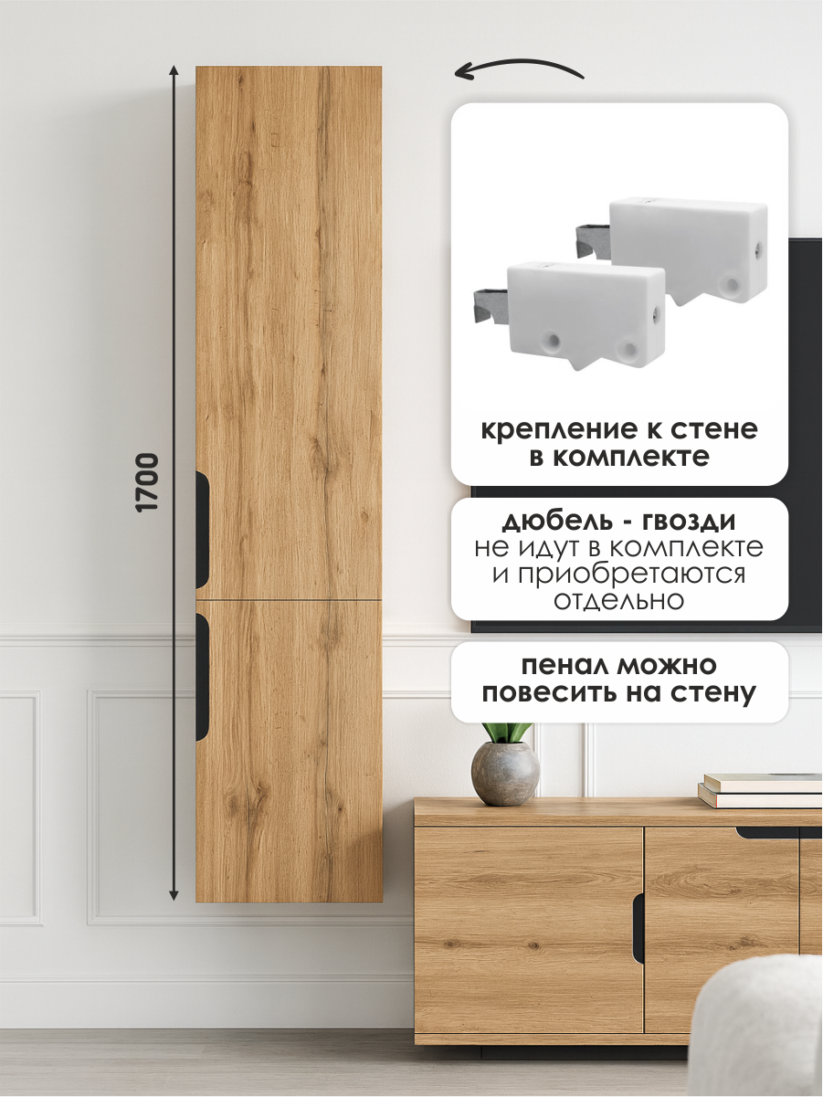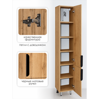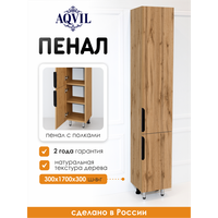 AQVIL Шкаф пенал для ванной напольный с полками универсальный Berta, 30*30*170 см, Дуб Вотан: сравнение цен, характеристики, фото, актуальное наличие и цены.