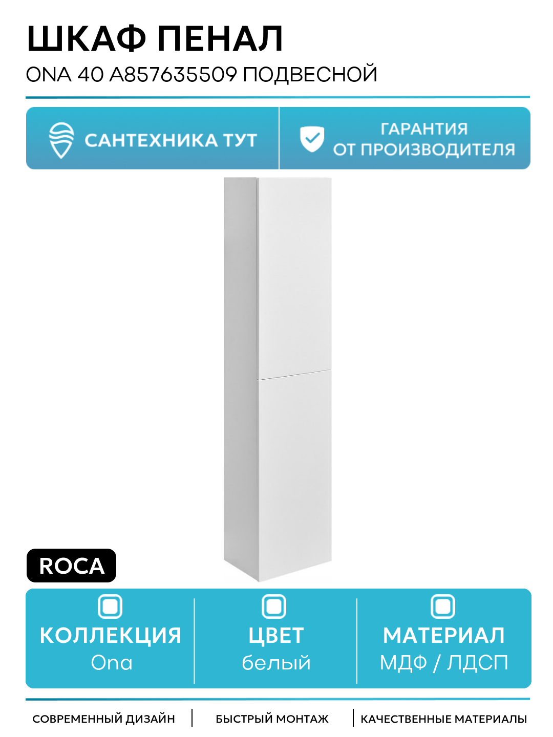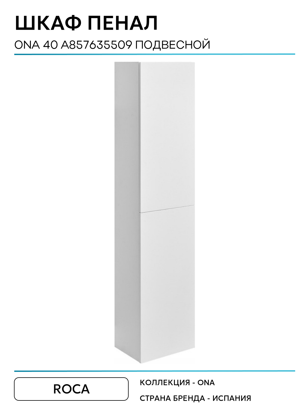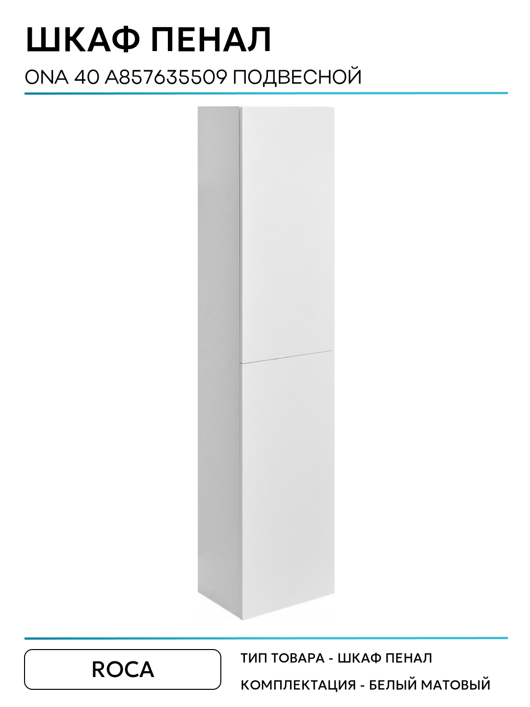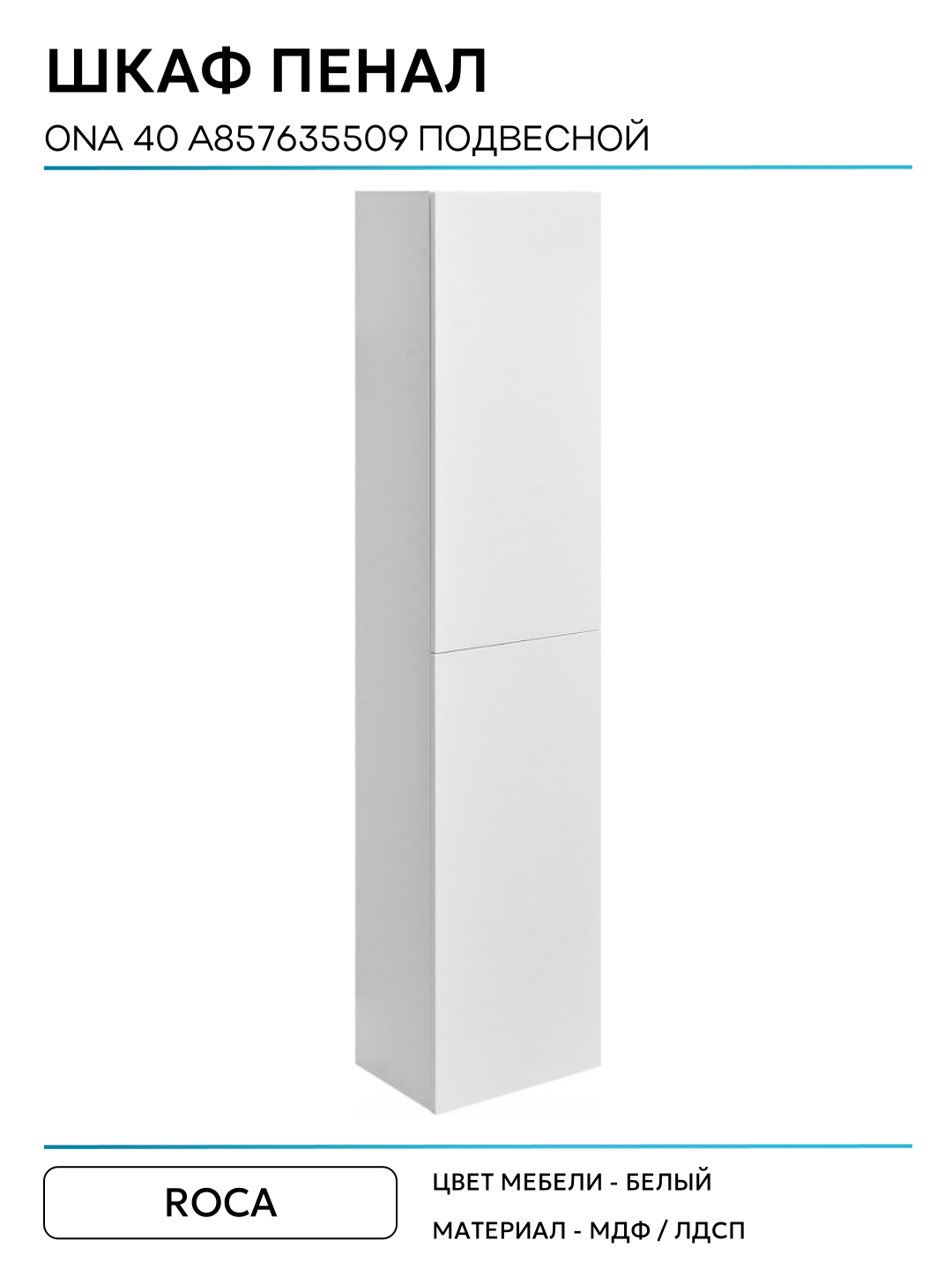 Купить Шкаф пенал Roca Ona 40 A857635509 подвесной Белый матовый МДФ / ЛДСП белый с дверками Испания с доставкой по всей России.