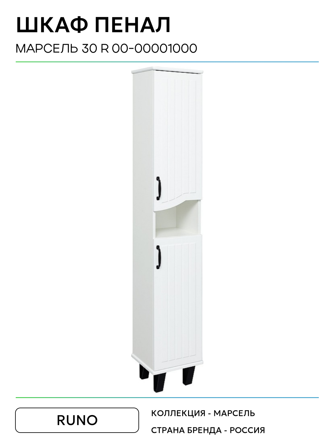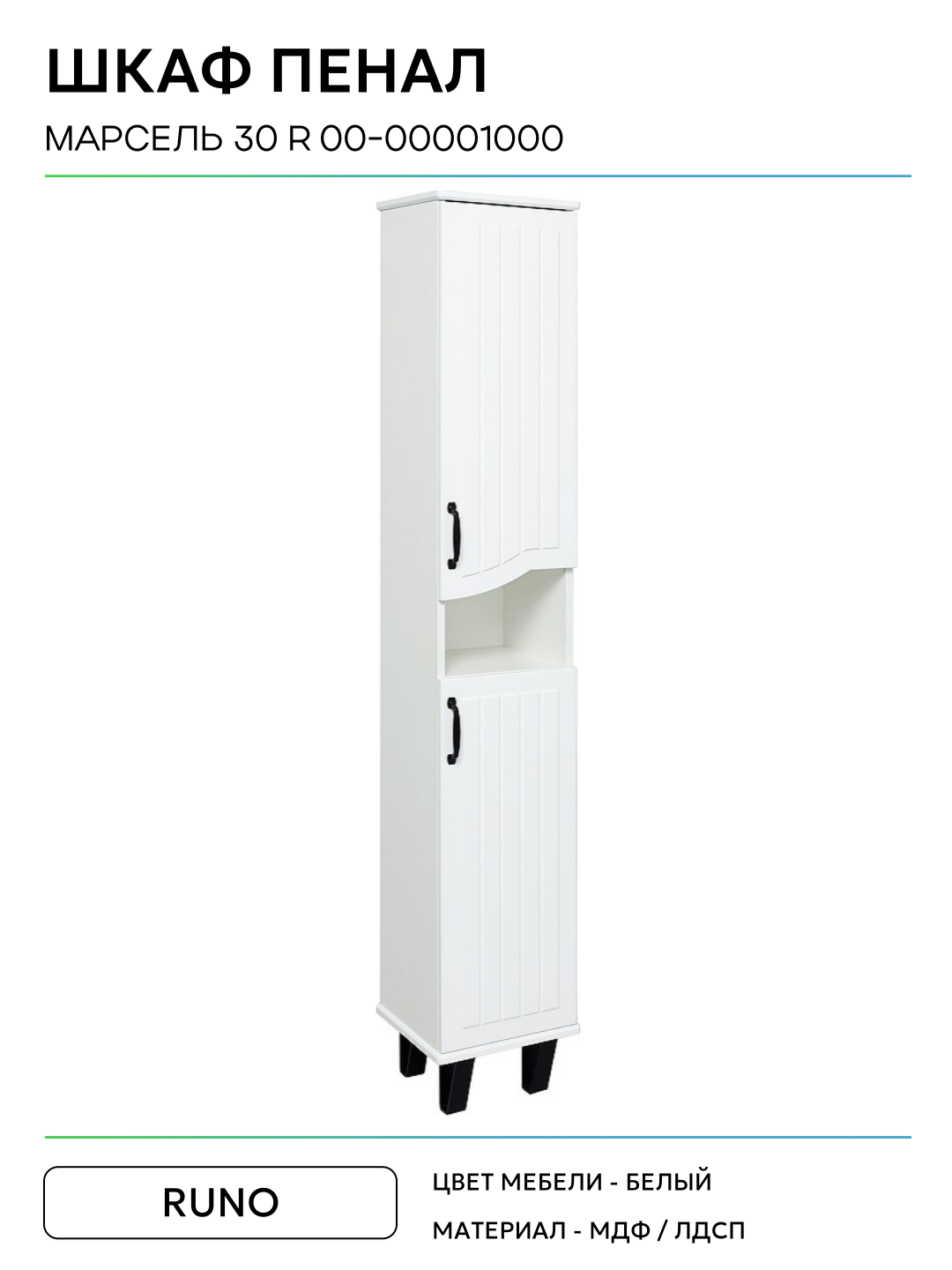 Шкаф пенал Runo Марсель 30 R 00-00001000 Белый МДФ / ЛДСП белый с дверками Россия: сравнение цен, характеристики, фото, актуальное наличие и цены.