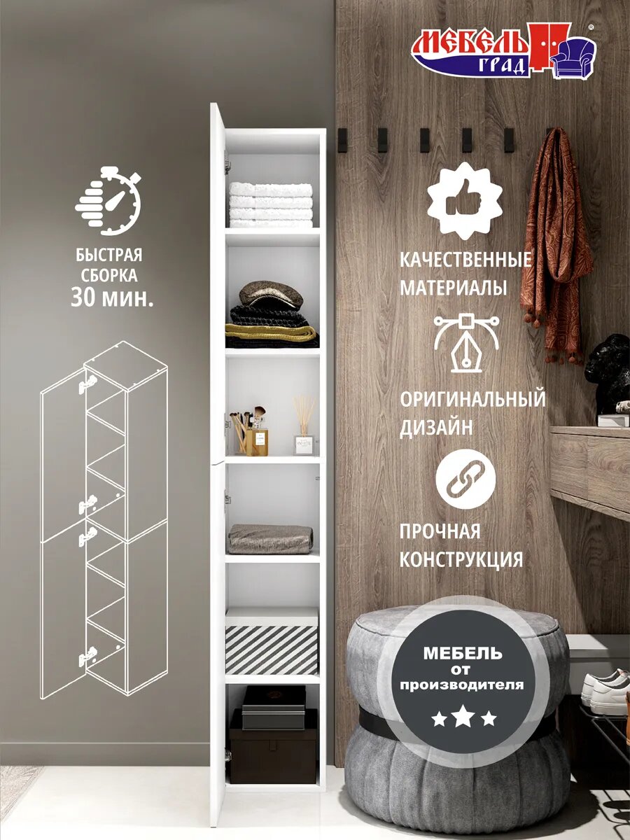 Преимущества шкафа-пенала заключаются не только в его элегантном внешнем виде, но и в высокой функциональности. Конструкция шкафа обеспечивает надежность и устойчивость, что очень важно для долгосрочного использования. Кроме того, белое покрытие легко очищается, что делает процесс поддержания чистоты простым и удобным.